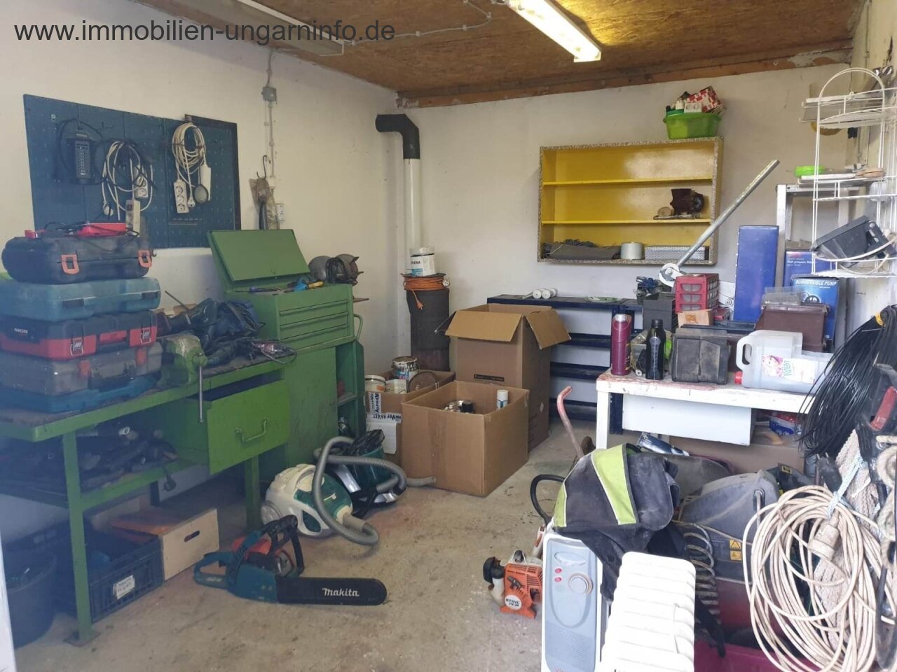 Erdgeschoss: Wohnzimmer mit amerikanischer Küche, Hauswirtschaftsraum/Waschküche, WC. Obergeschoss: Schlafzimmer, Bad, Balkon. Das Dachgeschoss ist derzeit ein Raum, aber es gibt auch die Möglichkeit, separate Räume zu schaffen. Im Nebengebäude befinden sich ein Carport, eine Werkstatt, Lagerräume und ein Raum, der auch für Dienstleistungen genutzt werden kann.