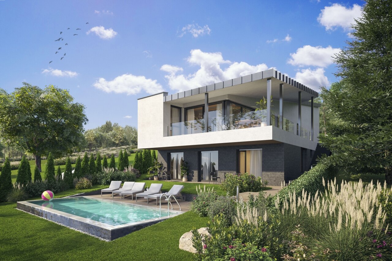 Neu gebautes Einfamilienhaus in Gyenesdiás mit stiller Lage ist zu verkaufen. Voraussichtlicher Übergabetermin ist Herbst 2023. Vom Obergeschoß und von der Terrasse eröffnet sich ein Teilpanorama auf den Plattensee und auf die Bucht in Gyenesdiás. Der angegebene Kaufpreis bezieht sich auf schlüsselfertigen Zustand, und ist im Falle des Erwerbs von Privatpersonen gültig. Wenn die Immobilie über Firma gekauft wird, ist der Kaufpreis 350.000.000,- Huf. Bei Bedarf wird auch den Bau eines Pools von dem Bauherrn in Auftrag genommen. Das Haus wird mit einem von Solarzellen unterstützten Wärmepumpensystem geheizt. Der Plattensee liegt 1 km vom Haus entfernt. Schönes, modernes Qaulitätshaus, bestens geeignet für einen ständigen Wohnsitz.