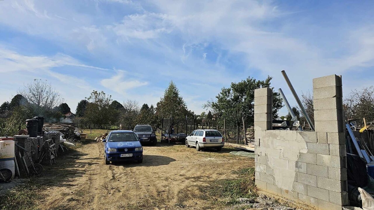 Auf dem Hof befindet sich das Garagengebäude in halbfertigem Zustand. Der flache, grasbewachsene Hof verfügt über einen gebohrten Brunnen.