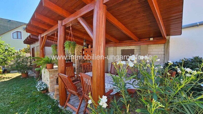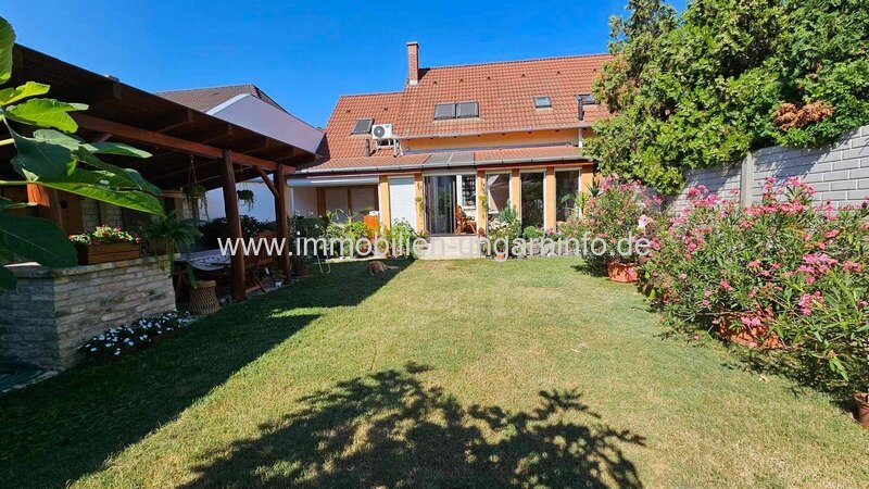 Ich biete zum Verkauf in Marcali, im Stadtzentrum, ein Reihenhaus mit Dachgeschoss, 130 m² Wohnfläche, 250 m² eingezäuntes Grundstück. Das Gebäude wurde im Jahr 2012 gebaut und ist strukturell, technisch und ästhetisch in neuwertigem Zustand. Erdgeschoss: Wohnzimmer mit amerikanischer Küche mit eingebauten Nussbaum-Küchenmöbeln, Wintergarten, Eingangshalle, Bad mit kanadischen Marmorfliesen und Massagewanne,