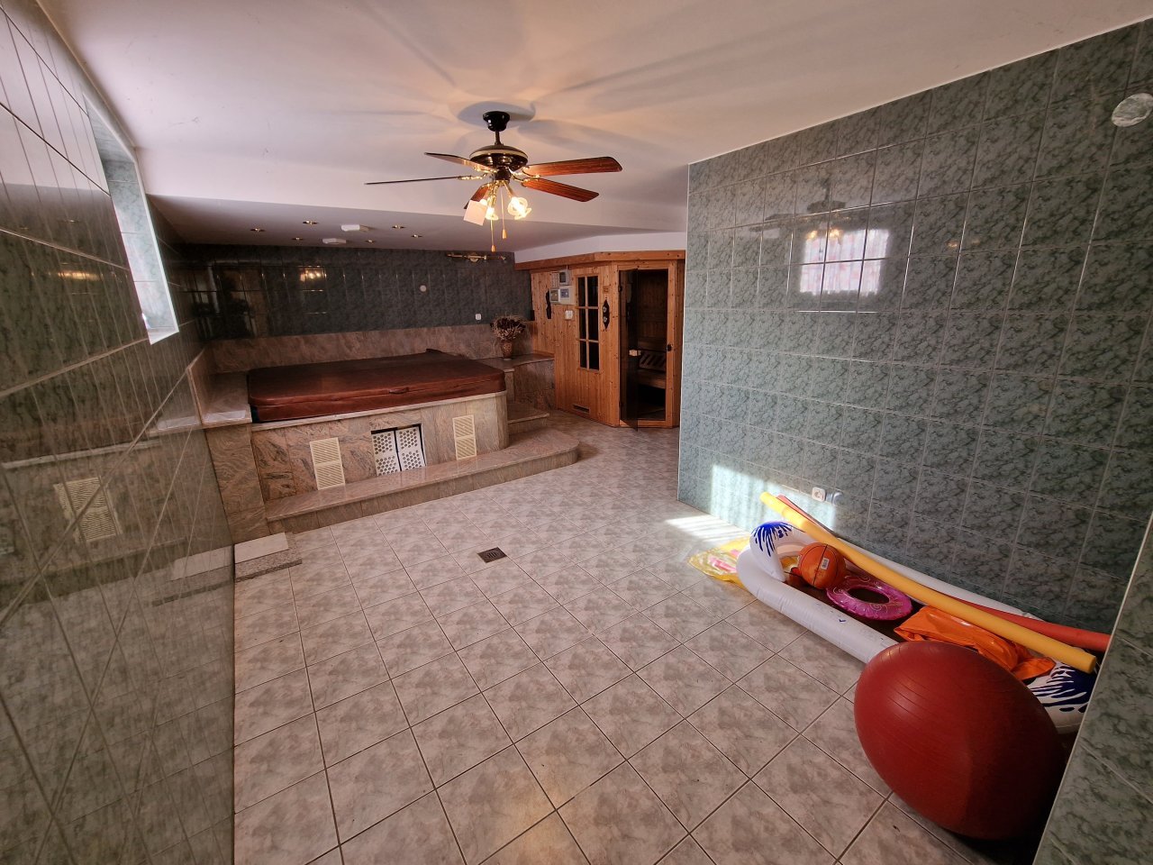 - außerdem der Wellnessbereich mit Ruheraum, Gesellschaftsraum mit offenem Kamin, Sauna, Whirlpool, entsprechenden Sanitärräumen und eine Vorbereitungsküche