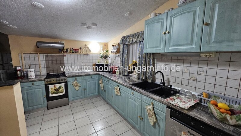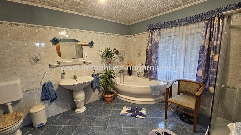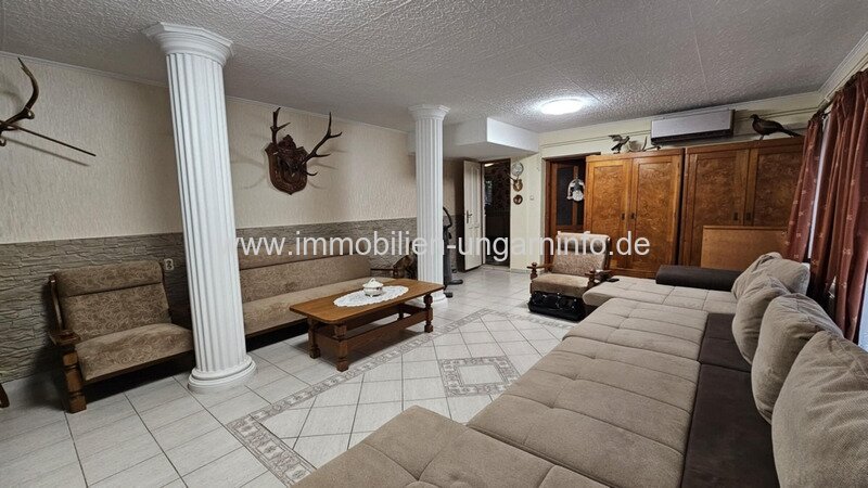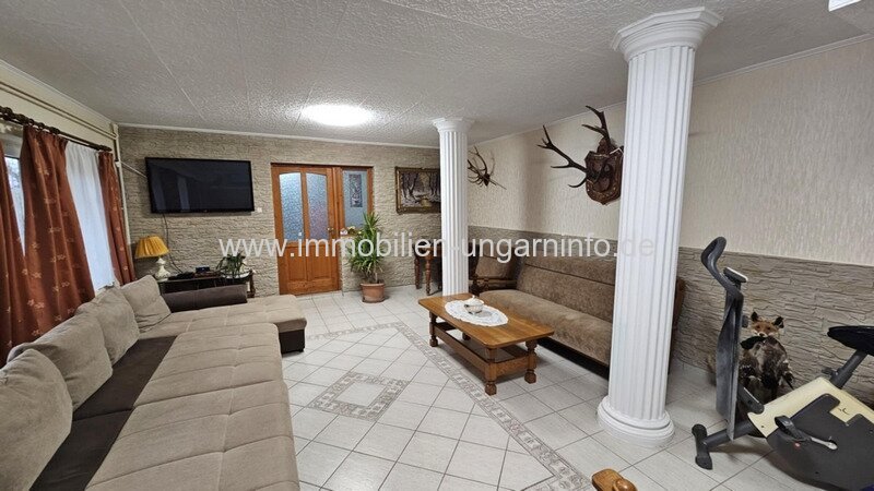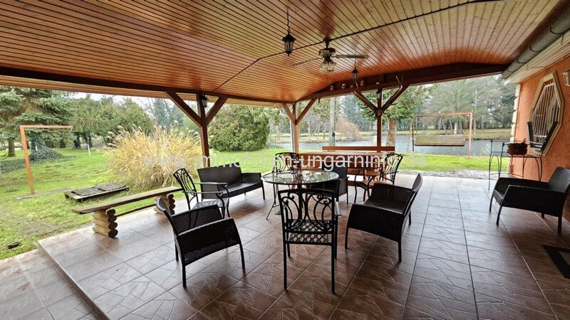 Ein paar Kilometer von Zalaegerszeg entfernt biete ich ein besonderes Familienanwesen zum Verkauf an: 5,9 Hektar Land und einen fast 2 Hektar großen Teich. Es verfügt über ein 293 m² netto, gut gebautes Familienhaus in ausgezeichnetem Zustand und ein weiteres Gebäude, das derzeit ein Fleischverarbeitungsbetrieb ist. Das im Jahr 2000 erbaute Haus ist baulich, technisch und ästhetisch in einem neuen Zustand und zeichnet sich durch großzügige Räume aus. Im Erdgeschoss: überdachte Terrasse von 85 m² mit Ofen, Wohnzimmer, 3 Schlafzimmer, Küche, Speisekammer, 2 Bäder (eines mit Sauna), beheizte Doppelgarage, Carport. Dachgeschoss: Flur, 2 Zimmer, Diele, Bad, WC. Das Gebäude ist an Strom, Wasser, Kanalisation und Gas angeschlossen. Heizung mit Gas-Zentralheizungen, aber auch elektrische Heizung und Klimaanlage.