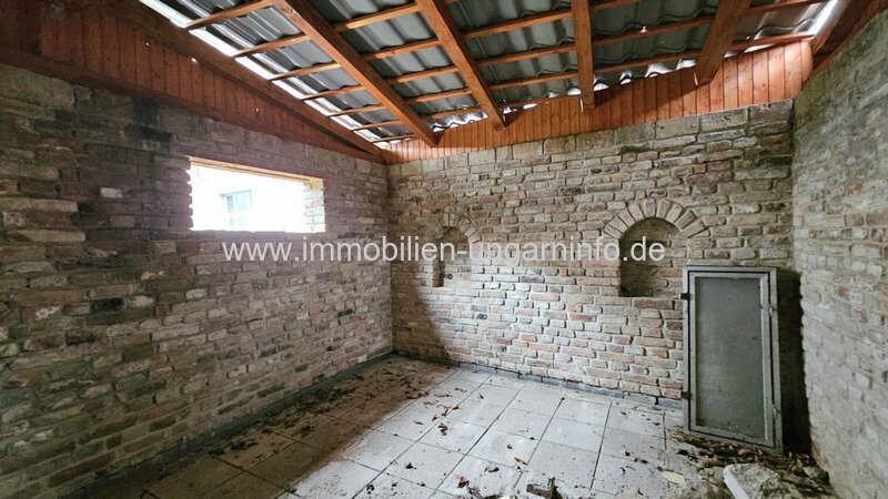 Von der Straße aus gelangt man durch ein überdachtes Tor in den Innenhof, wo sich ein Gewölbekeller, ein überdachter Carport und ein Hinterzimmer befinden.
