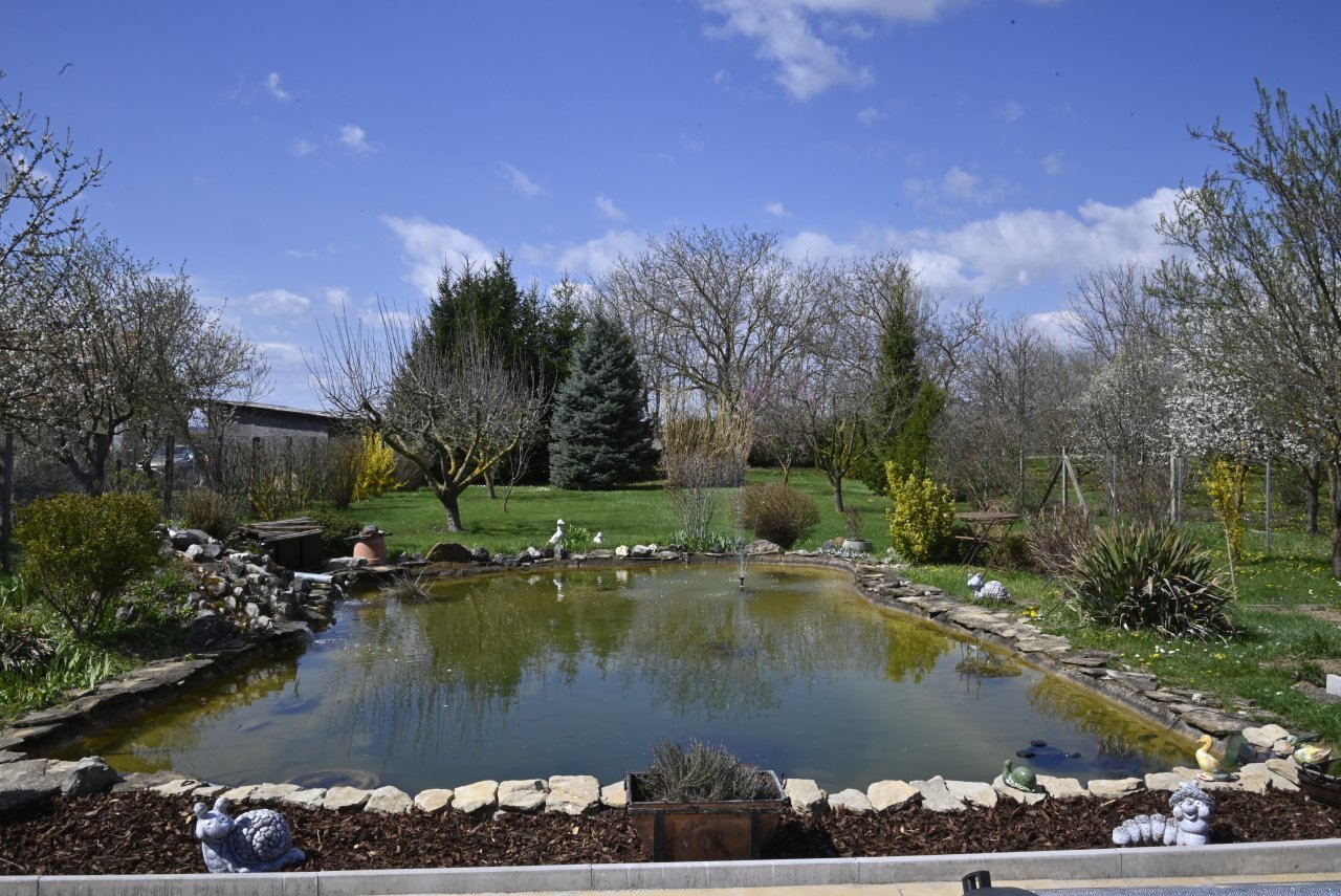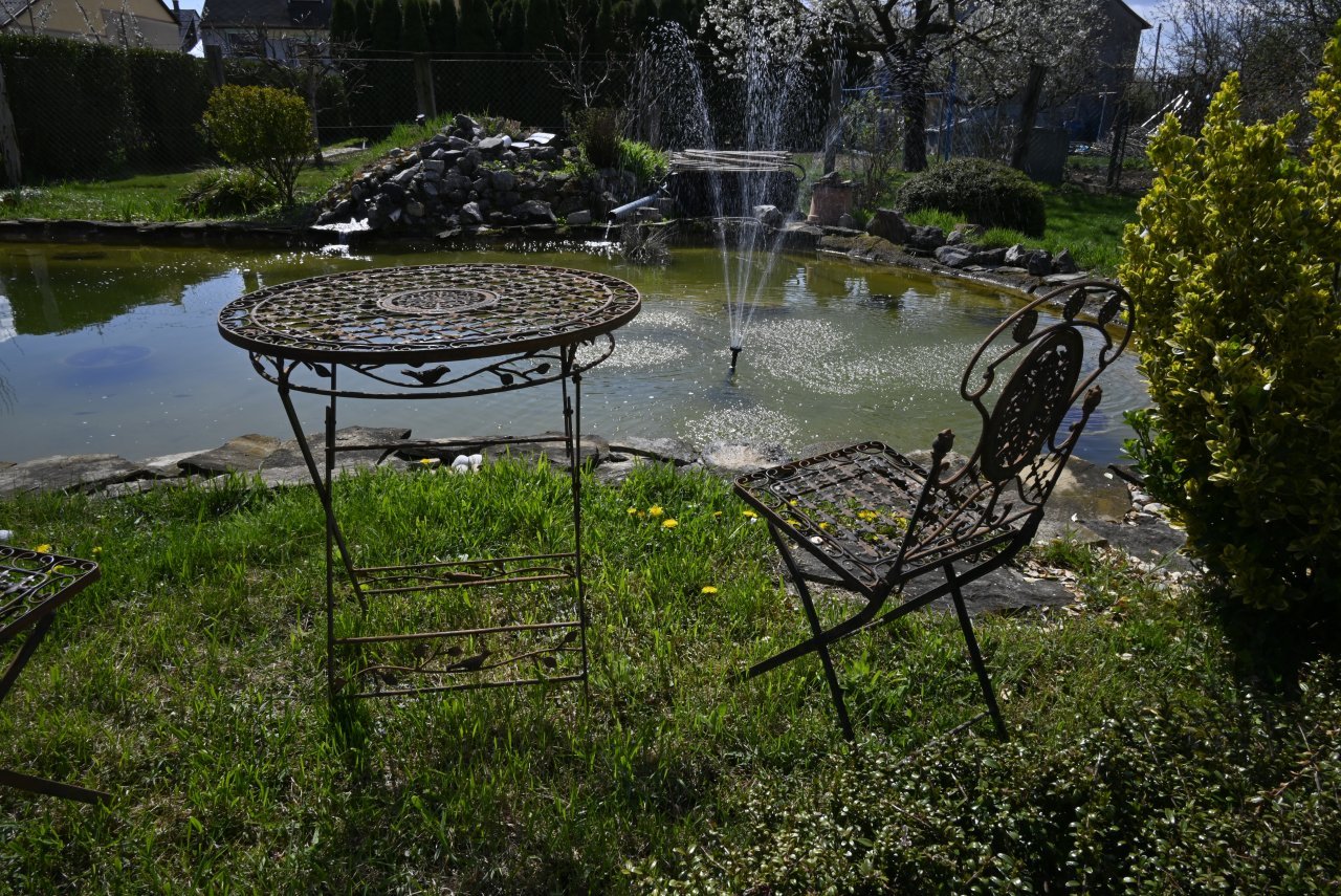 - einen Koi-Teich der günstig über Brunnenwasser gespeist wird und über eine hochwertige Filteranlage (12.000 Liter/Std) verfügt