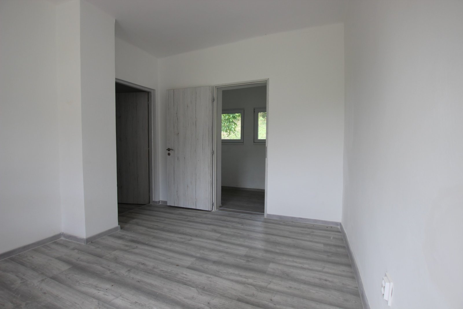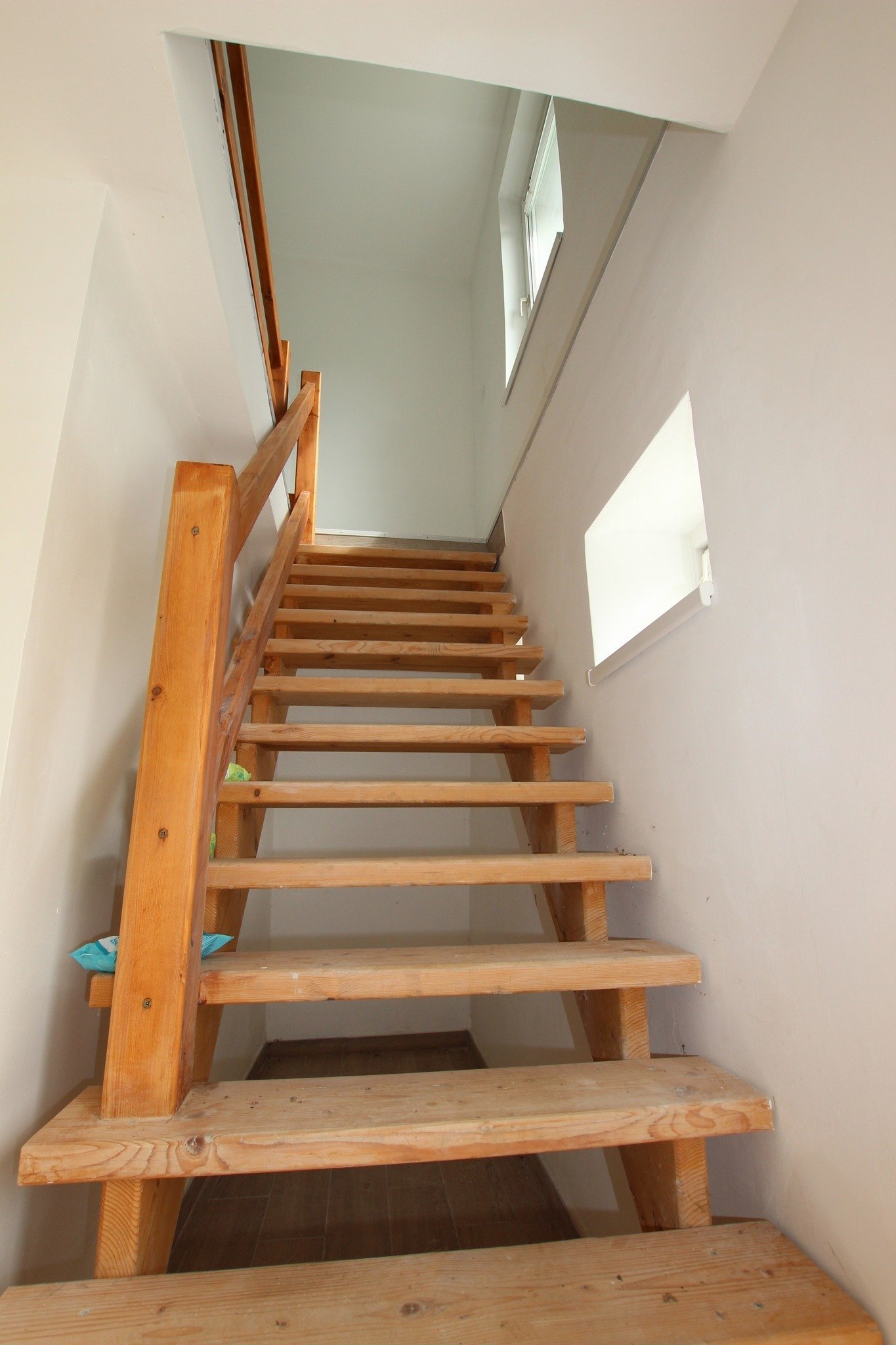 Im Erdgeschoss befinden sich das Badezimmer, ein separates WC, eine Treppe und ein frei nutzbarer Raum.