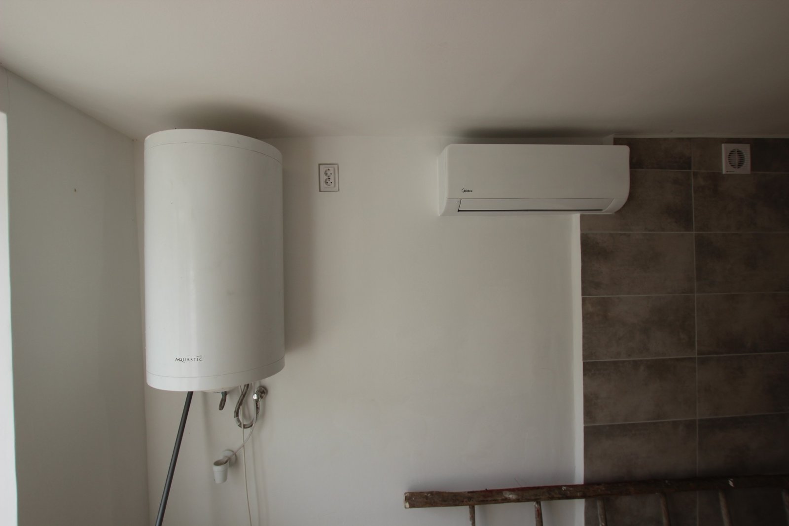 Die Beheizung des Gebäudes erfolgt über eine Kühl-Heiz-Klimaanlage (3x16A, 1x16 A gesteuert), das Wasser kommt aus einem Bohrbrunnen. Die Fenster sind mit Rollläden und Fliegengittern ausgestattet.