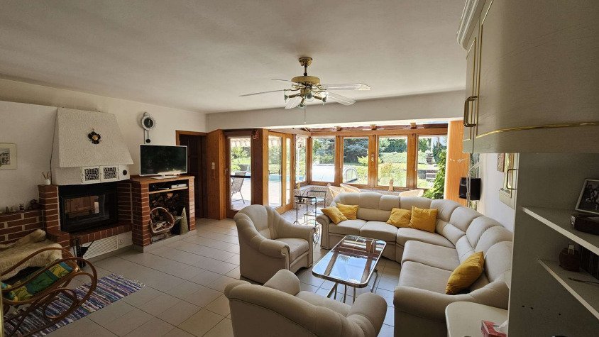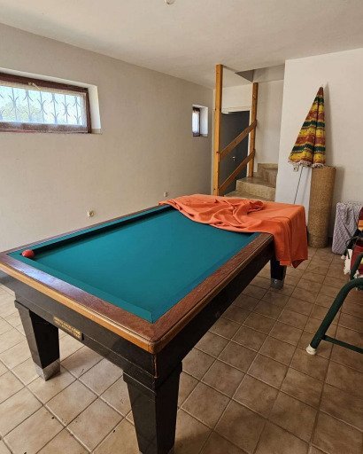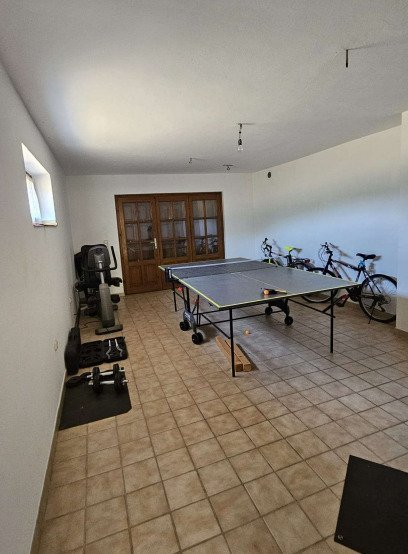 Im Eingangsbereich des Hauses befinden sich zudem eine Garage sowie eine große Sommerküche mit eigenem Ausgang zur Terrasse. Zwei separate Mehrzweckräume mit Billard- und Tischtennistisch sowie Fitnessgeräten erweitern das Freizeitangebot. Darüber hinaus stehen zwei große Dachbodenräume zur Verfügung.