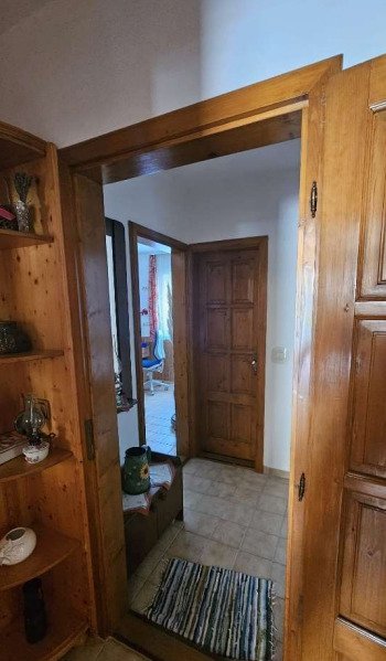 Die obere Etage bietet zwei weitere Schlafzimmer, eine Küche, ein Wohnzimmer, ein Bad mit WC sowie zusätzlich einen Büroraum, ein Bügelzimmer mit Bügelpresse und einen großzügigen Abstellraum.