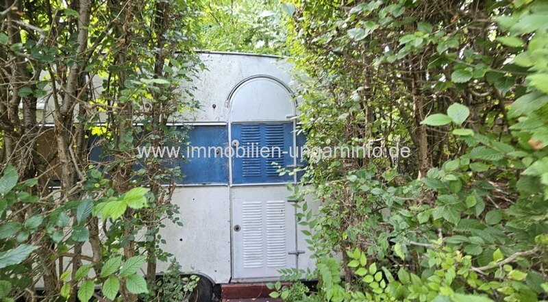 Nebengebäude: In der Ecke des Grundstücks befindet sich ein Holzhaus, das derzeit als Werkzeugschuppen dient, sowie ein Wohnwagen, der ebenfalls im Kaufpreis enthalten ist.