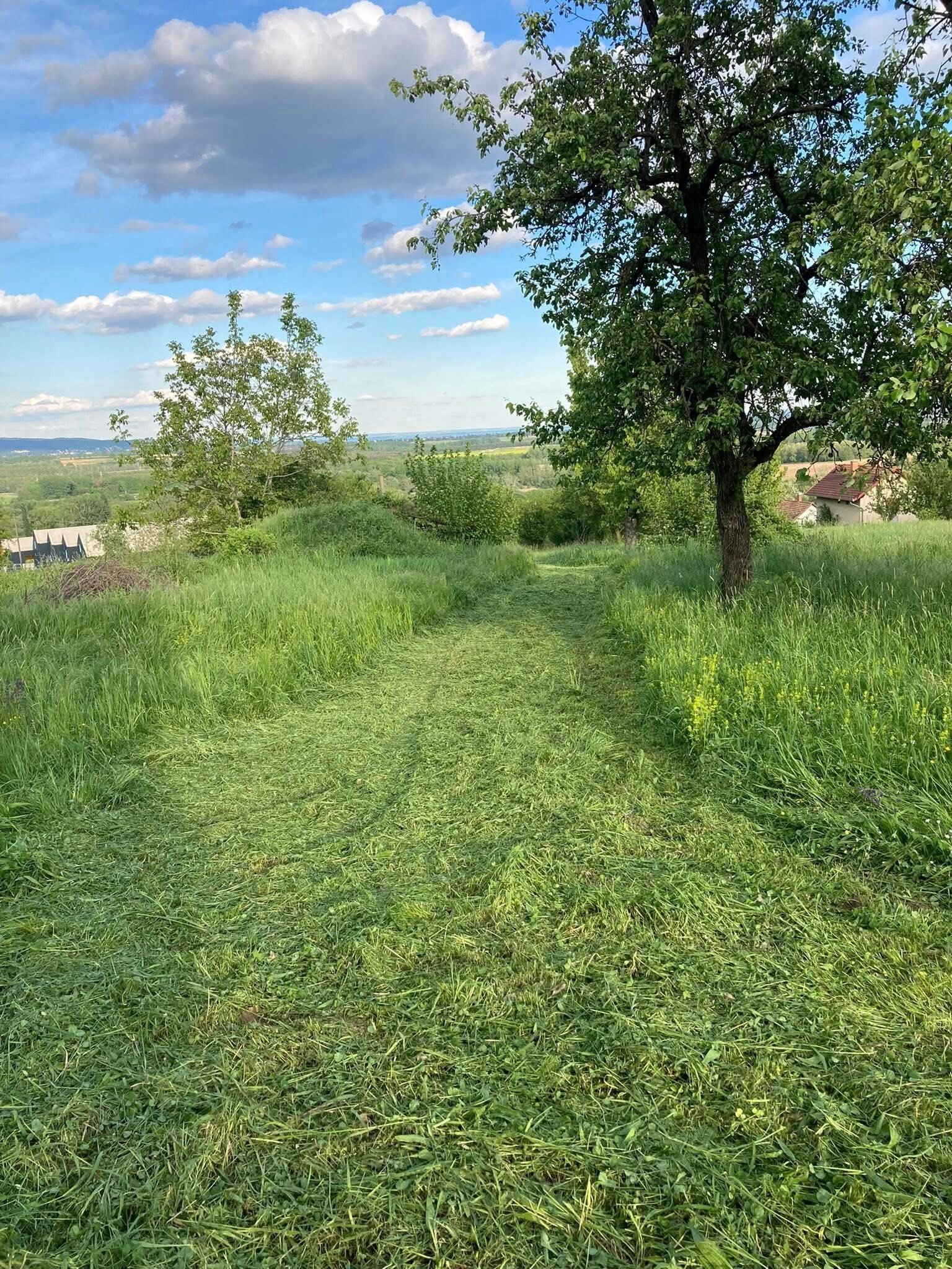 Auf diesem Grundstück wurde früher Obstanbau betrieben. Entsprechend verfügt das Grundstück über einen gewachsenen Obstbaumbestand (Apfel, Birne, Mirabelle, Pflaume, Pfirsich, Feige) und entlang des Zaunes ranken viele Weinreben. Am Ende des Grundstücks befindet sich ein kleiner Akazienwald, der von einem kleinen Bach an der Grundstücksgrenze entlang begrenzt wird. Wer Ruhe und Natur schätzt, wird diesen Ort lieben!