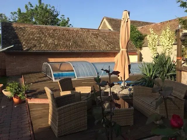 Highligt ist der 3 x 6 Meter große Außenpool mit Schiebe-Glas-Überdachung ( mit Solarheizungsanlage), sowie ein sehr großes Weinkellergewölbe.