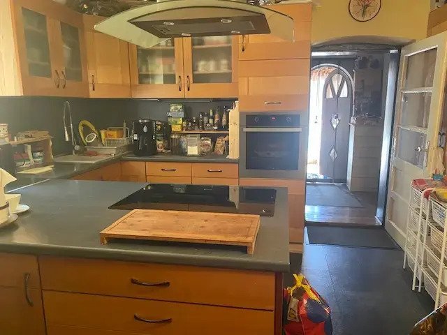 Wohnküche (gegen Ablöse) mit vom Schreiner eingebaute Küche mit breiter Kochinsel, Hochbackofen, überbreites Ceran-Kochfeld,