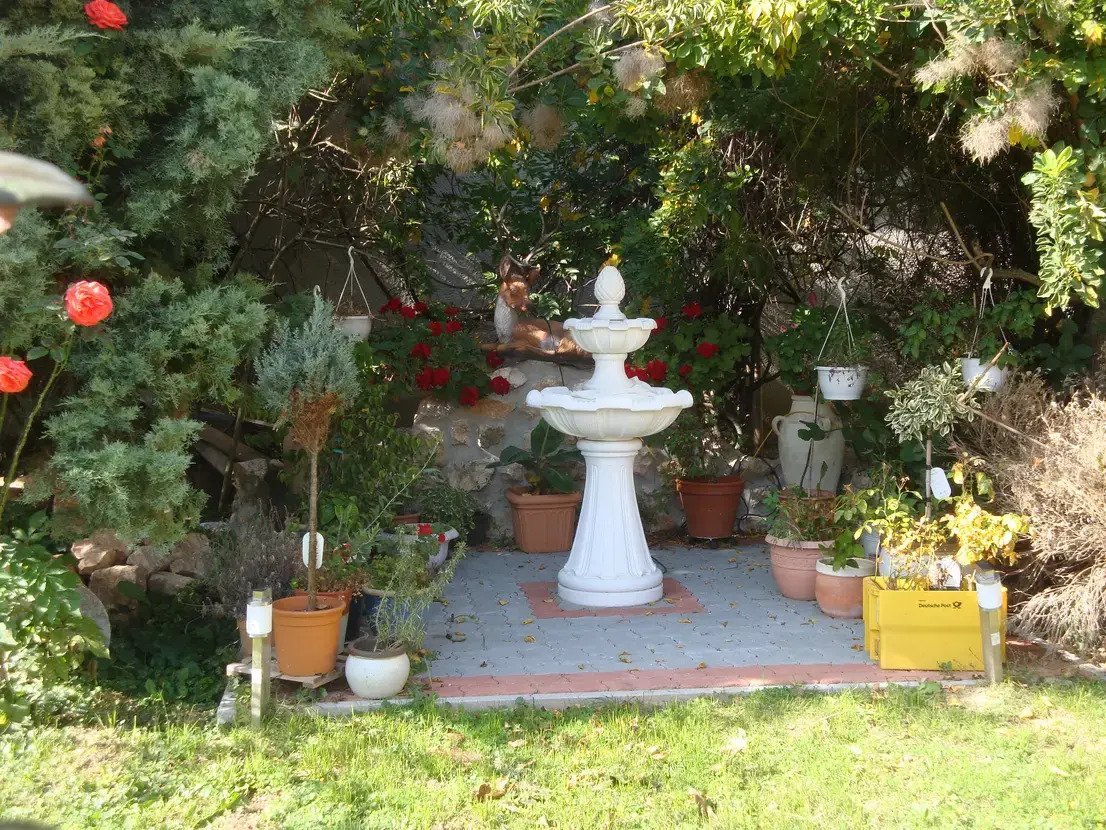 Im Grundstück gibt es einen Holzpavillon, einen gemauerten Pavillon im Finca-Stil, sowie einen Steingarten mit kleinem Teich und einen Springbrunnen.