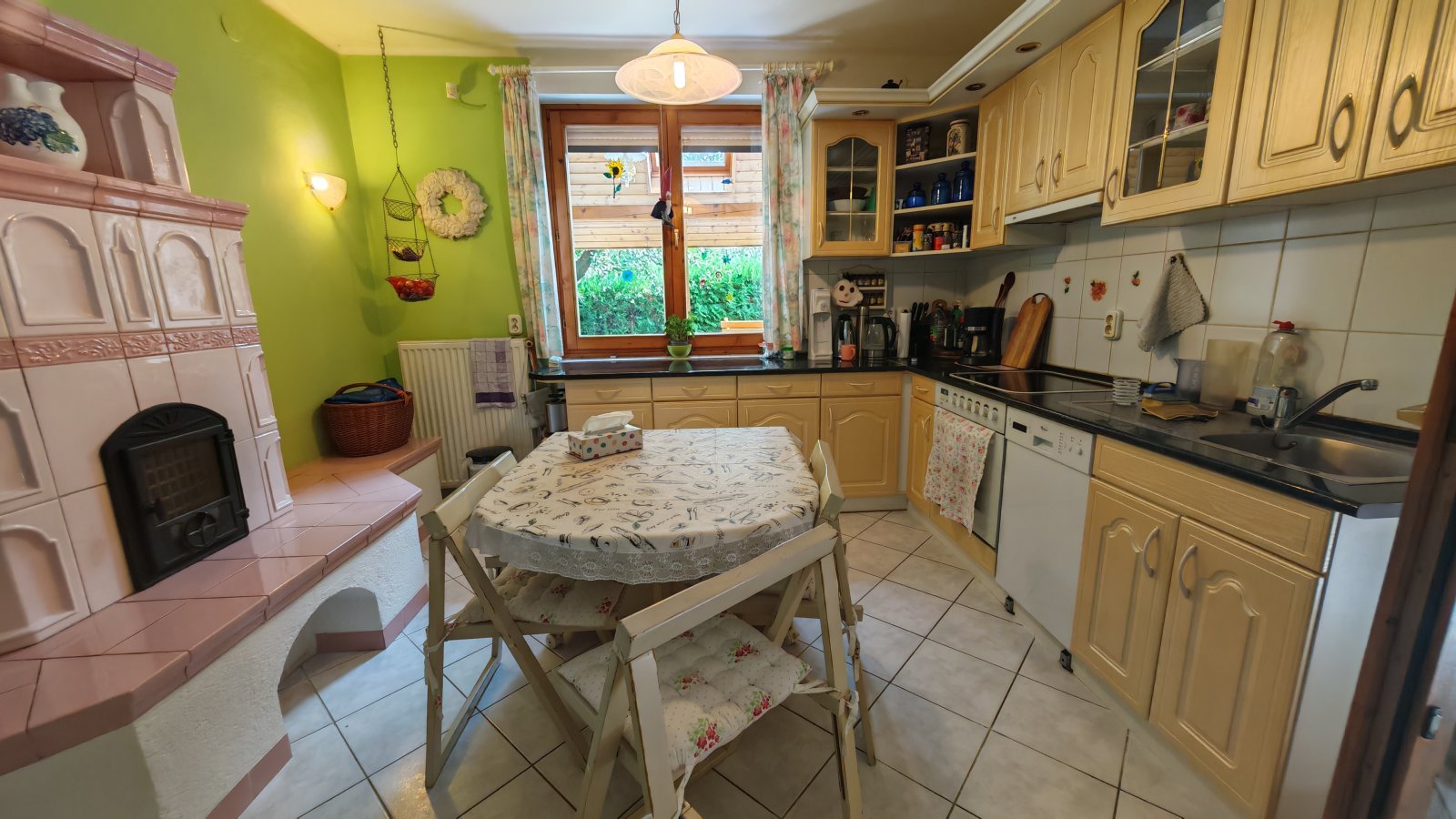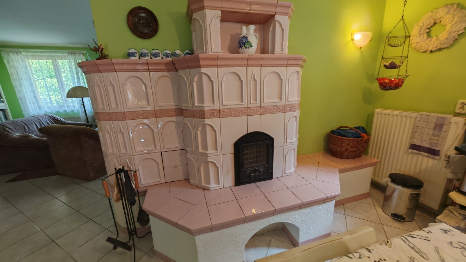 Gas-Zentralheizung, zusätzlich Kachelofen und Holzofen