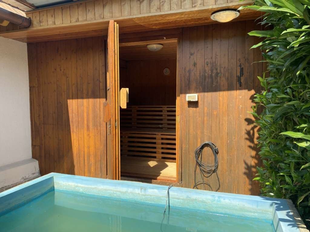 Das ca. 660 m² große Grundstück umfasst zwei Gebäude, die einen geschützten Innenhof mit direktem Zugang zu einer Sauna und einem Tauchbecken bilden. Die harmonische Anordnung schafft ein hohes Maß an Privatsphäre und gleichzeitig kurze Wege zwischen Wohnhaus, Nebengebäude und Garten.