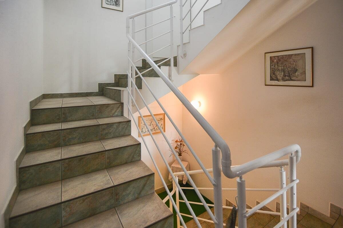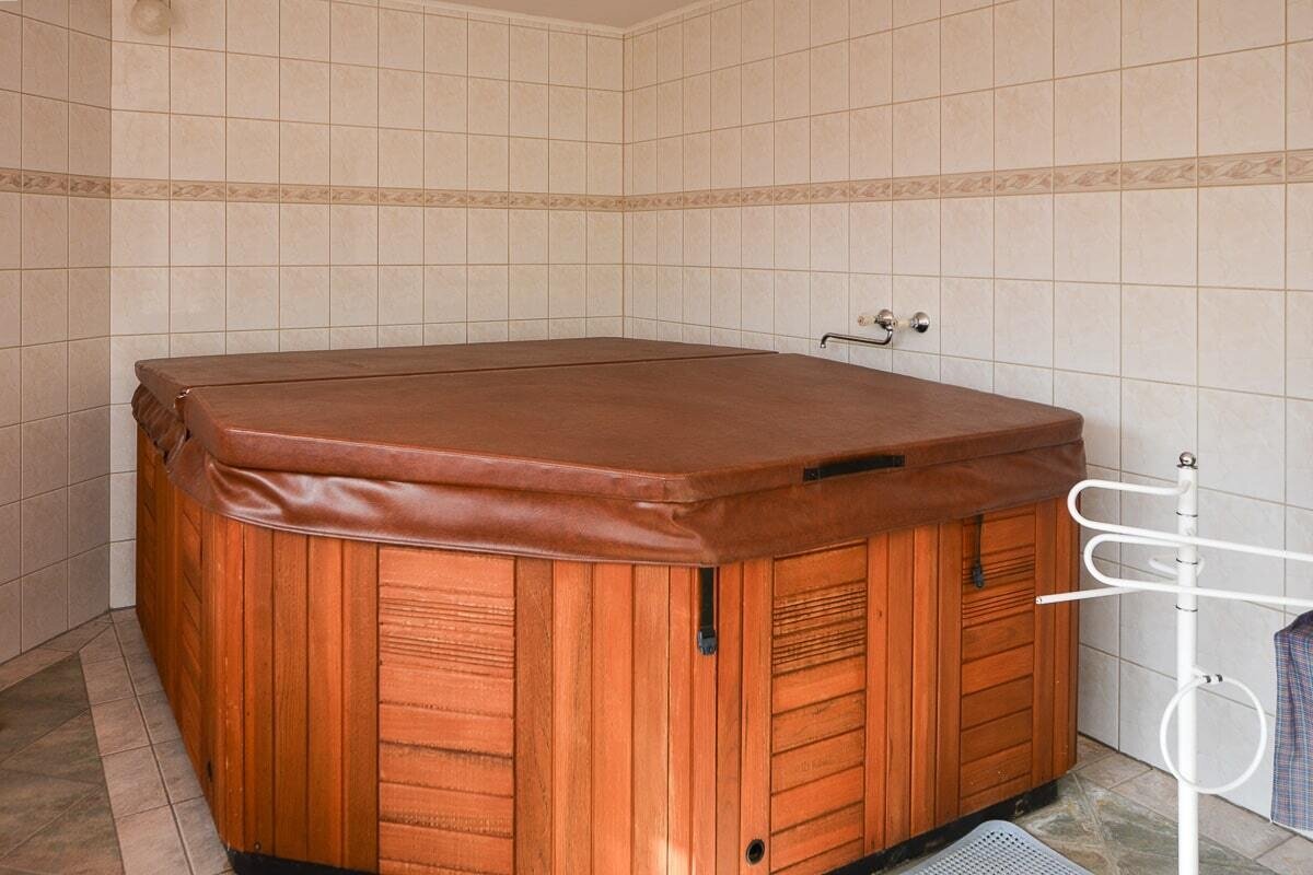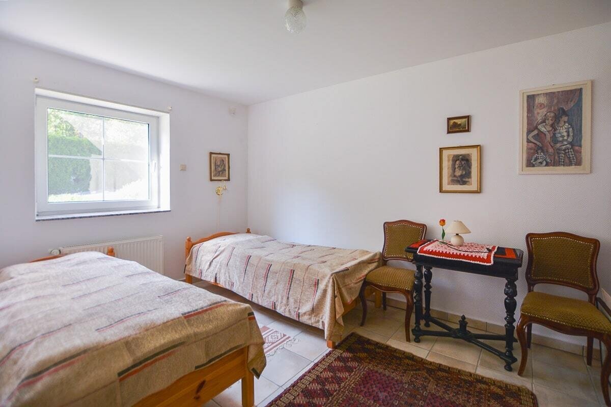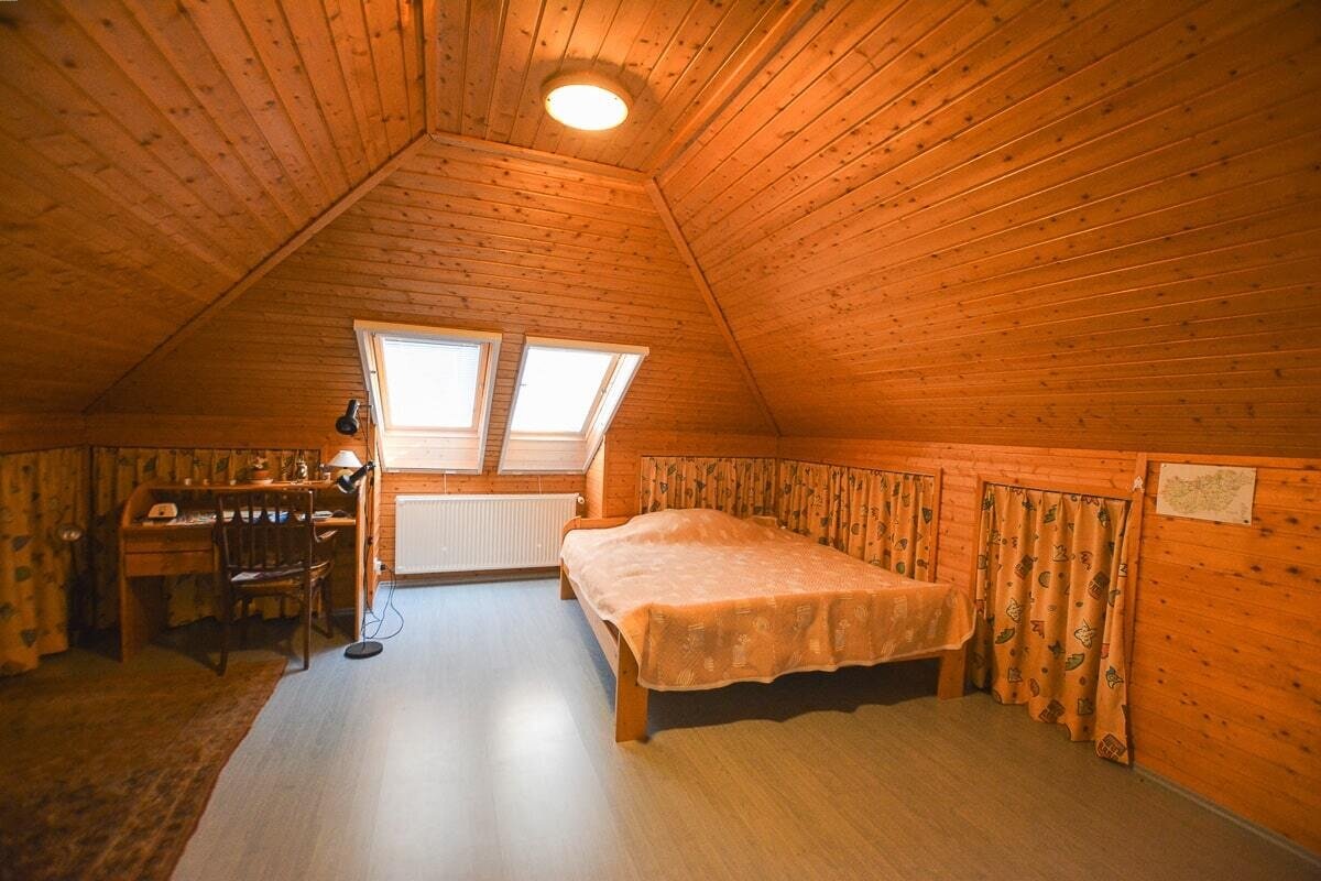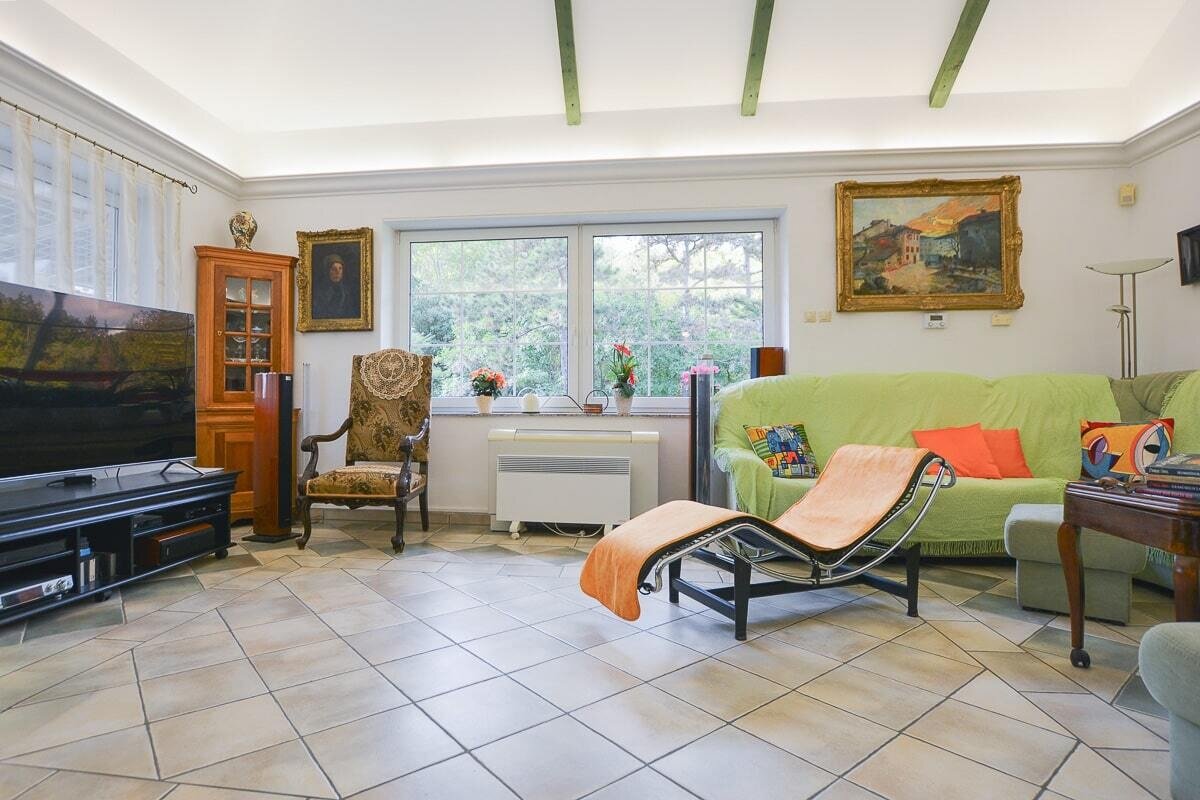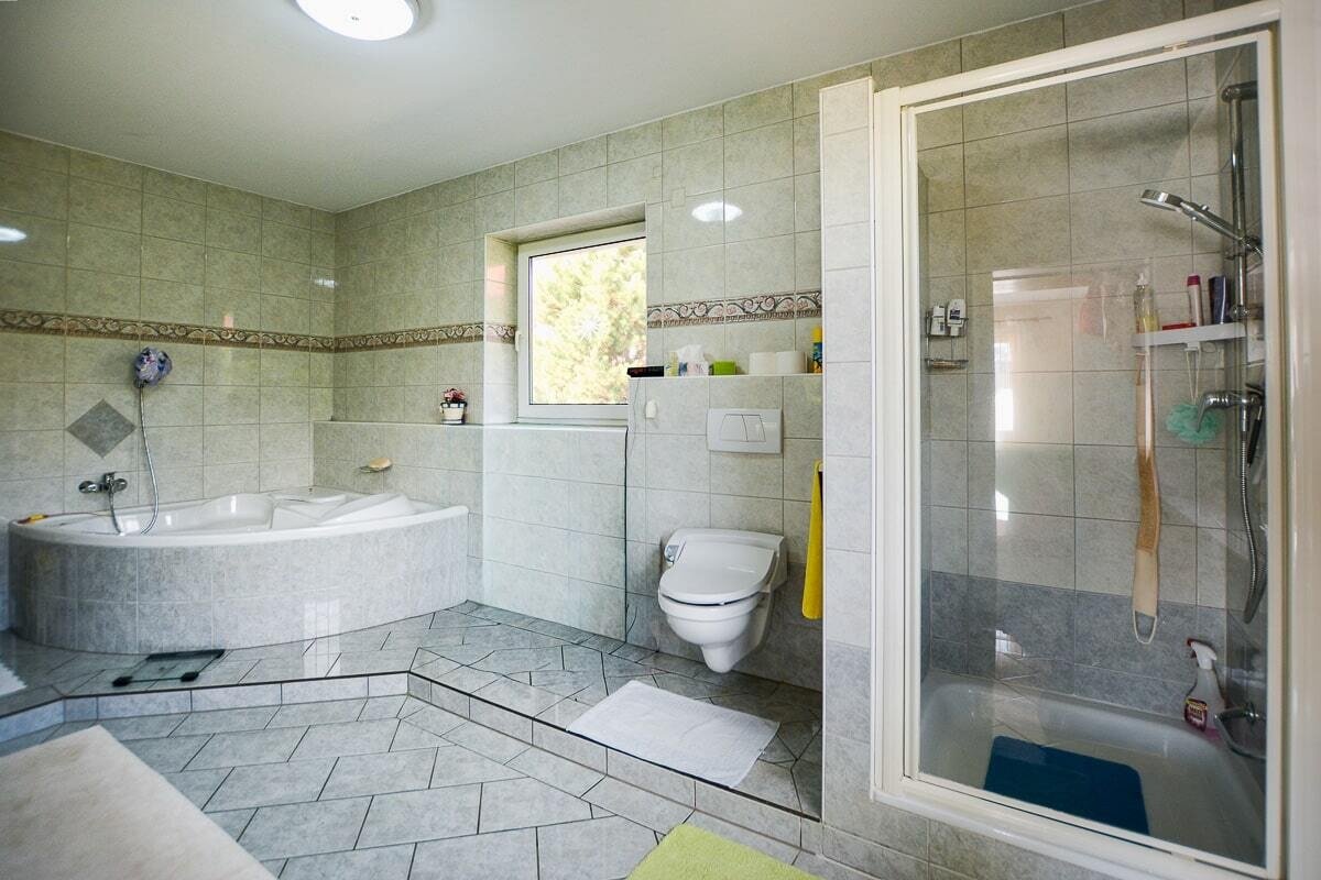 Waldnah, in wunderschöner Natur gelegene Villa in Vonyarcvashegy ist zu verkaufen. Das Haus wurde im Jahre 1998 mit ausgezeichneten Qulaitätsbaumaterialien errichtet. Das Haus kommt mit 4 Ebenenen, im Kellergeschoß wurden ein Gesellschaftsraum für Freundestreffen, und Räumlichkeiten für Nutzung als Weinkeller eingerichtet. Das Erdgeschoß kommt mit einer Einliegerwohnung, einem Wellness-Raum und einer Doppelgarage. Das Wellness-Raum ist mit Sauna + Jacuzzi ausgestattet. Das erste Geschoß ist durch weitläufige Räumlichkeiten geprägt, hier befindet sich das schöne, großzügige Wohnzimmer mit der offnenen Küche. Von der Küche eröffnet sich eine überdachte, südlich ausgerichtete Terrasse. Im Dachgeschoß wurden mehrere Zimmer und Badezimmer geeignet für Gäste eingerichtet. Das Haus wird mit Gaszentralheizung erwärmt, darüber hinaus stehen Fancoil-Heizungssystem und ein Kachelofen zur Verfügung. Zur Unterstützung des Strombedarfs wurde ein 8 kW Solarmodul installiert. Für die Sicherheit des Hauses sorgt ein Alarmsystem mit Kameras.