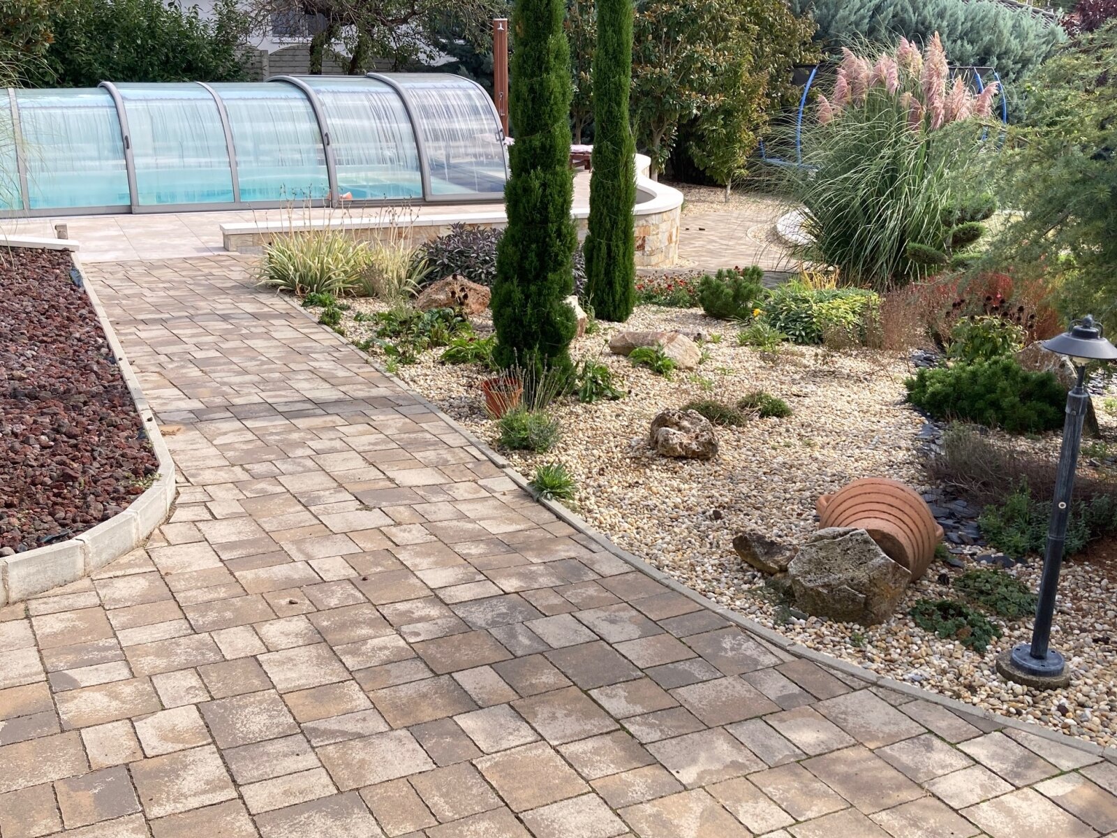 Die Immobilie bietet eine Wohnfläche von 198 m2, alles auf einer Ebene – mit großzügigem Wohn und Esszimmer mit Küche drei Schlafzimmern, Badezimmer, sonniger Terrasse und Doppelgarage. Auf dem Grundstück befinden sich zusätzlich ein separates, komplett ausgestattetes Gästehaus, ein praktisches Nebengebäude sowie ein überdachter, beheizbarer Außenpool.