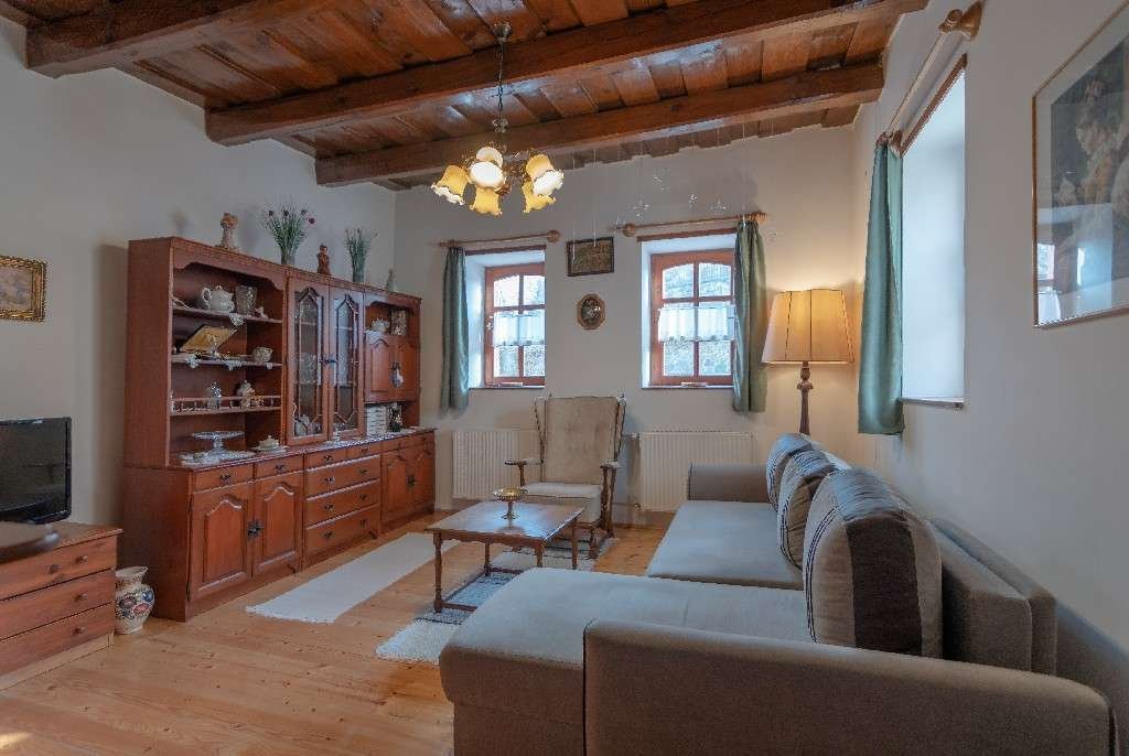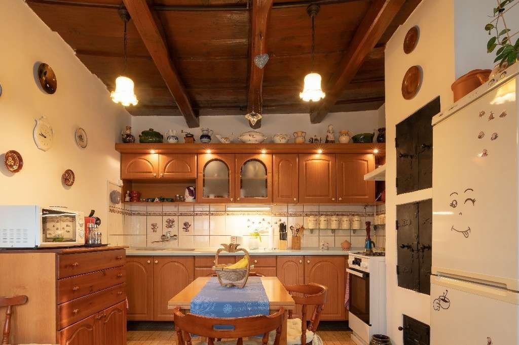 Im vorderen Teil des Hauses befindet sich ein offener Eingang, eine offene Terrasse, im Wohnbereich ein geschlossener Eingang, 2 Zimmer, Küche, Holzbalkendecken in originalem, tadellosem Zustand, Flur, Bad-WC-Räume, Wohnnutzfläche 70 m2.