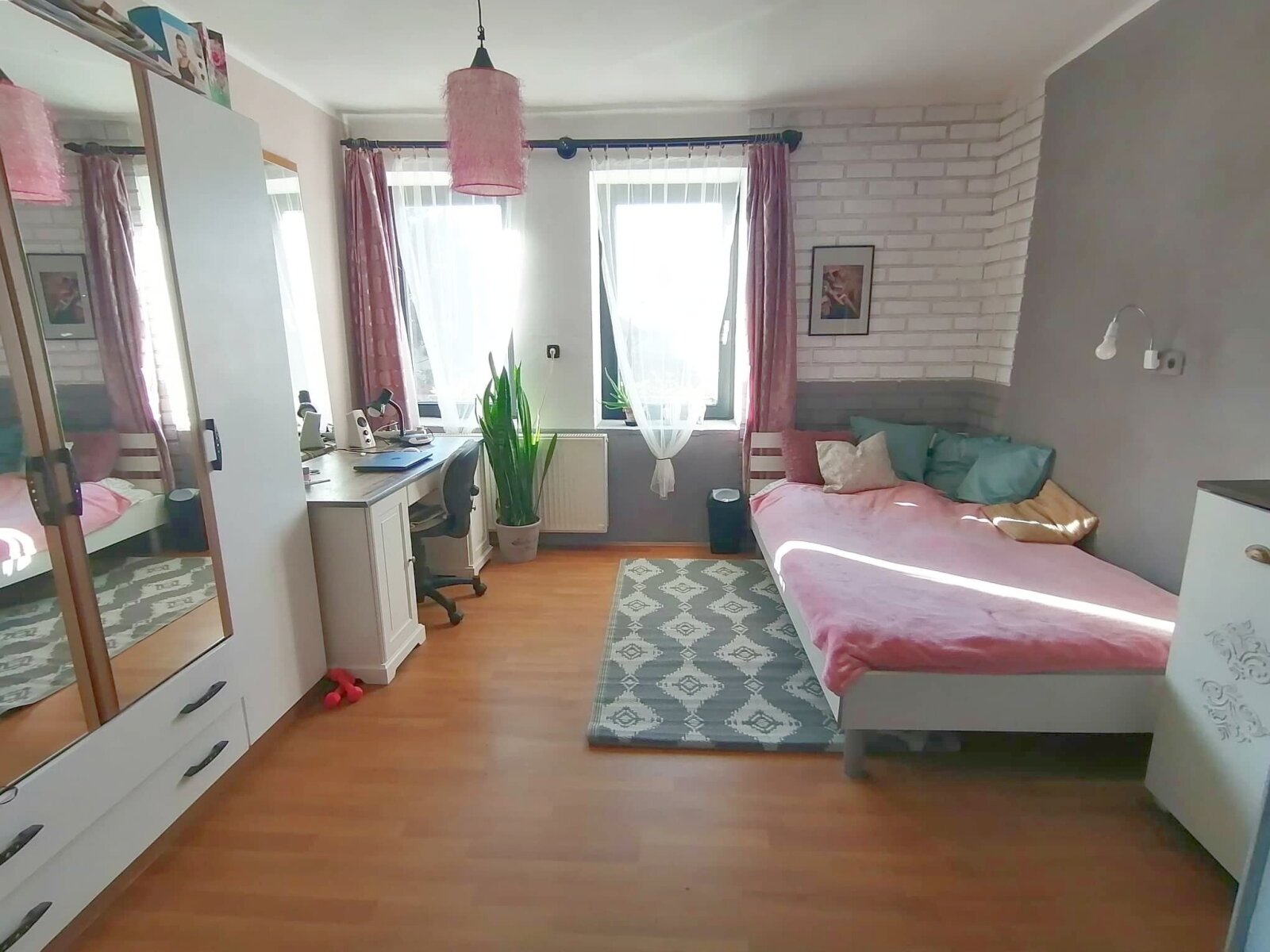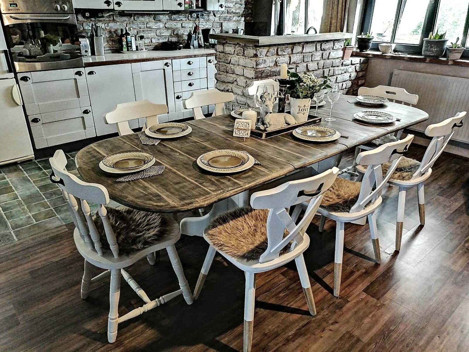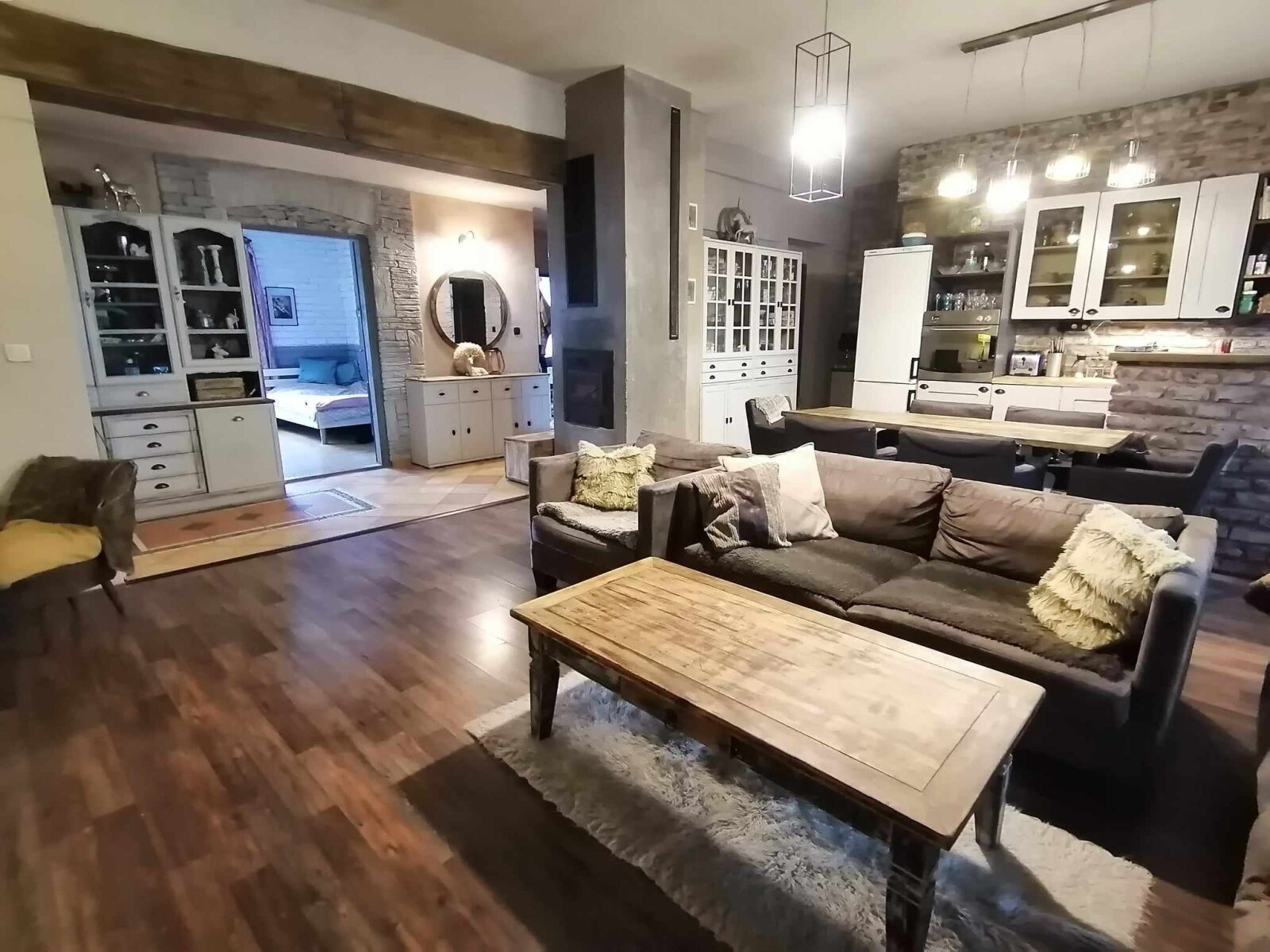 Bei der Gestaltung wurde auf jedes Detail geachtet. Wohnzimmer und Küche befinden sich in einem Raum, der sich ideal für Familien- und Freundestreffen eignet. Das Haus verfügt noch über vier geräumige Schlafzimmer sowie eine Waschküche, einen Kleiderschrank, ein Badezimmer und eine Toilette.