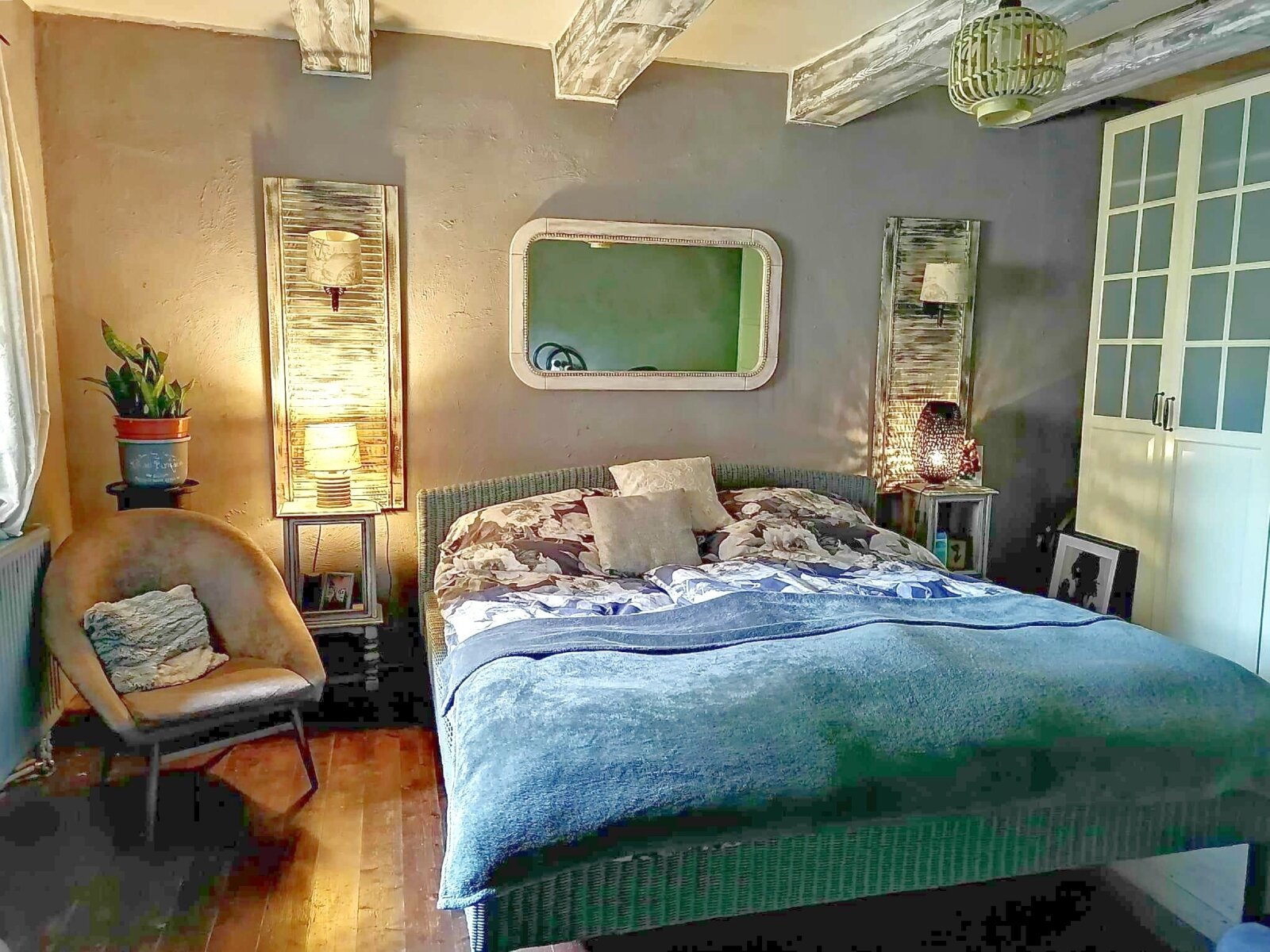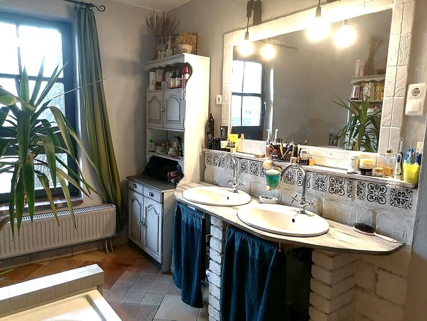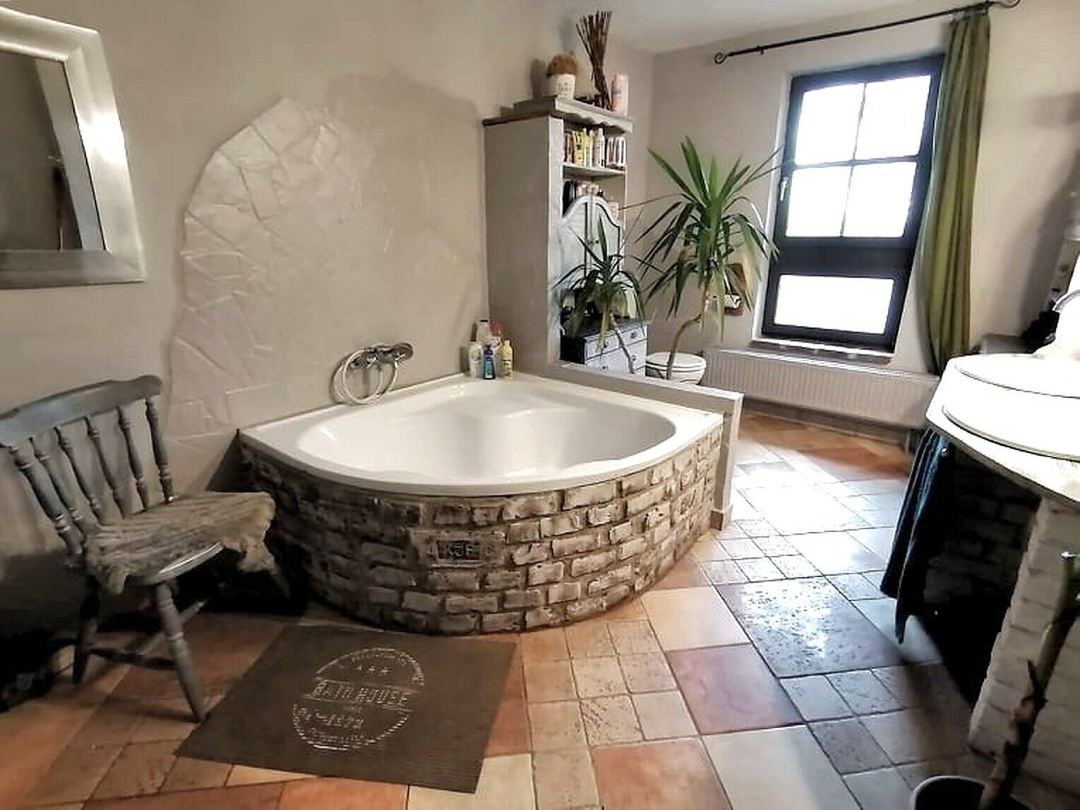 Die Beheizung erfolgt über eine Gastherme, im Wohnzimmer mit zusätzlichem Kamin. Die Abdeckungen im mediterranen Stil sorgen für eine angenehme Atmosphäre.