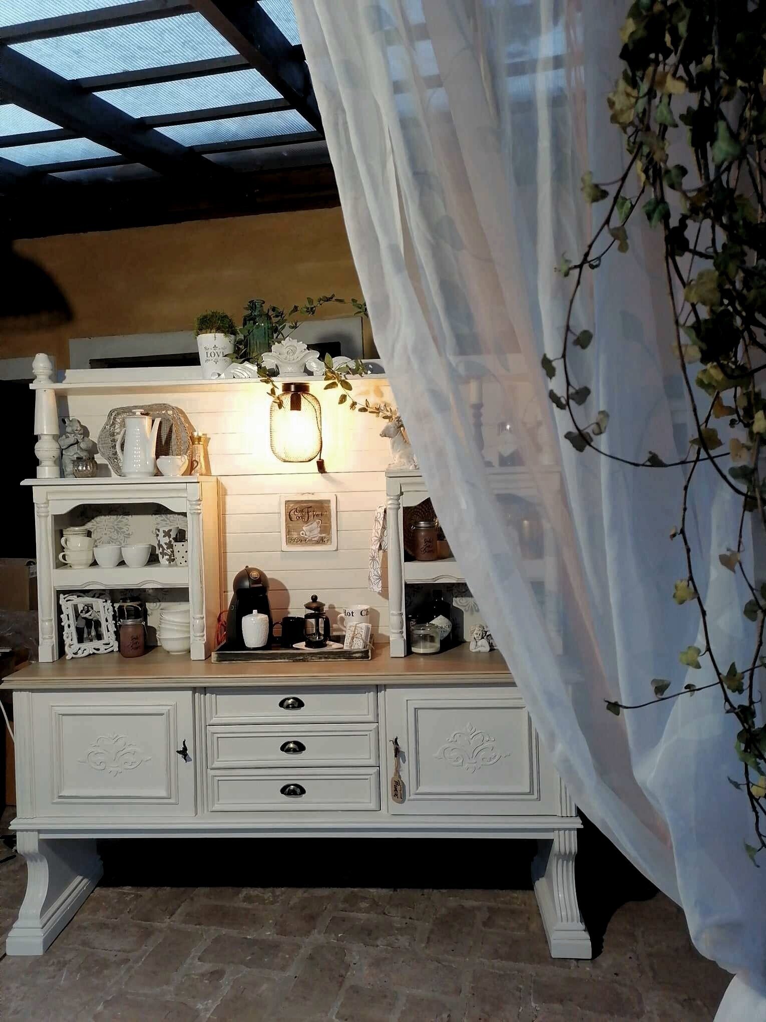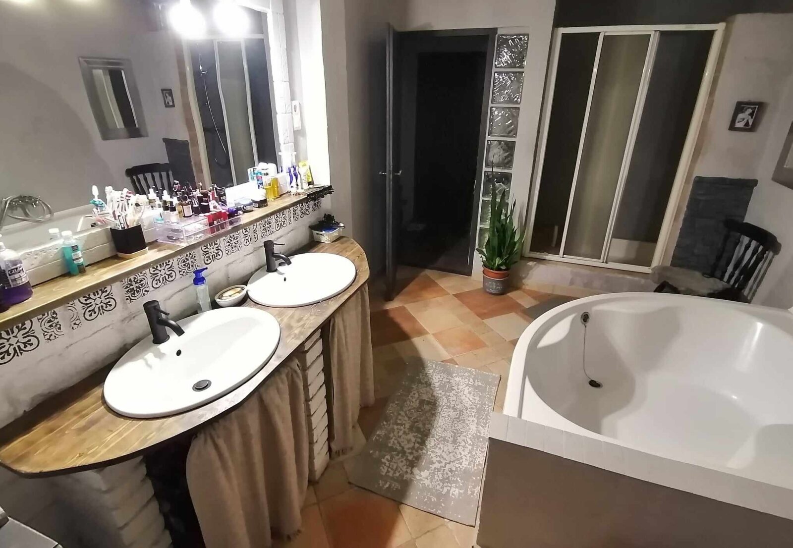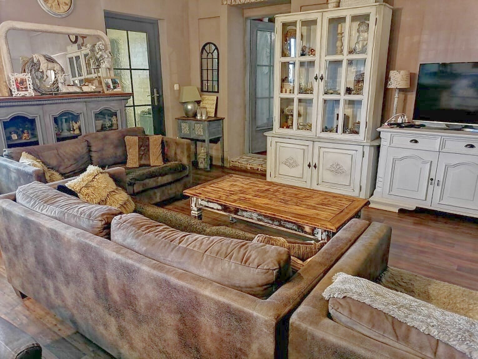 Die Beheizung erfolgt über eine Gastherme, im Wohnzimmer mit zusätzlichem Kamin. Die Abdeckungen im mediterranen Stil sorgen für eine angenehme Atmosphäre.