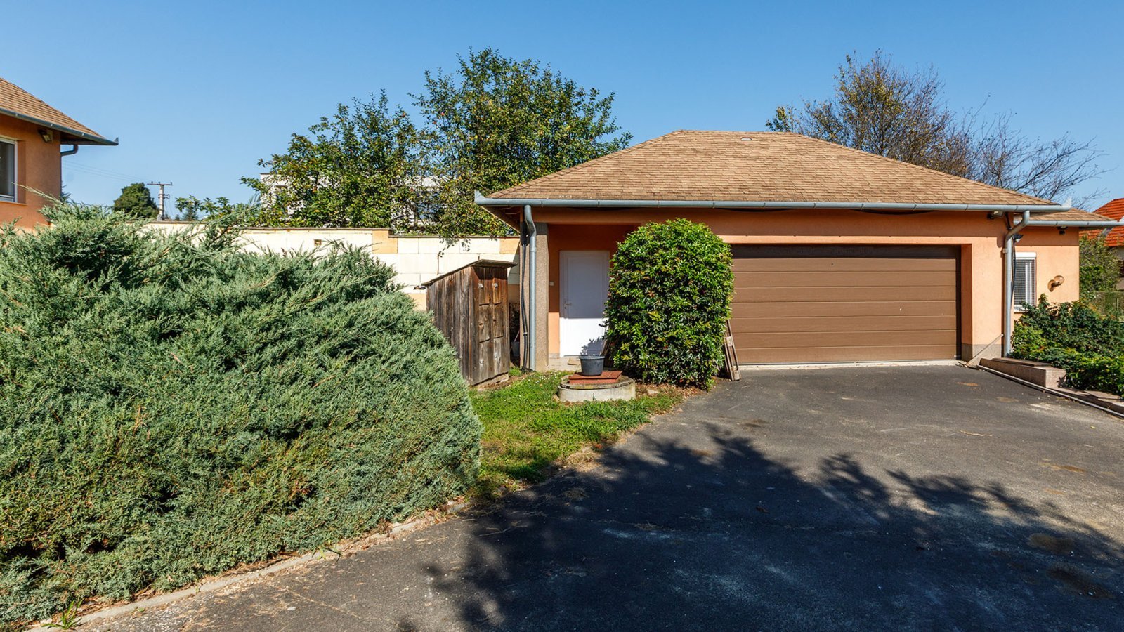 Eine Doppelgarage bietet Platz für zwei Autos. Zwei separate Abstellräume sind ebenfalls vorhanden. Im Hof befinden sich zwei separate, 3 x 3 Meter große Holz-Gartenhäuser.