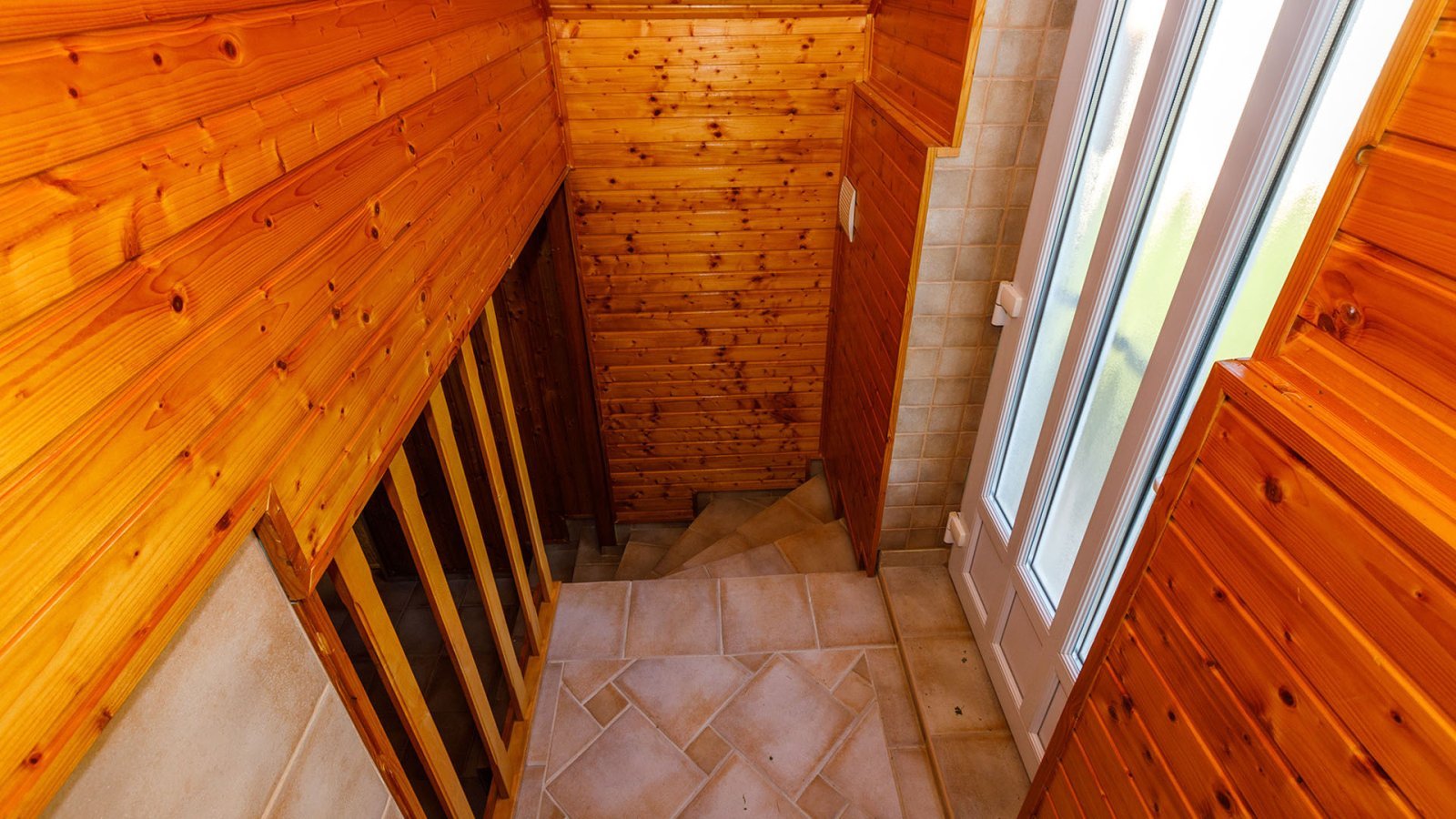Der trockene Keller ist als Fitnessraum konzipiert und verfügt über einen Innen- und einen Außenzugang.
