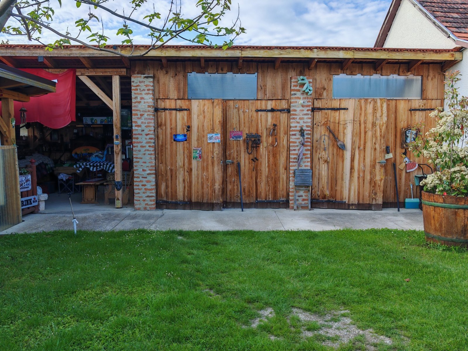 Viel Platz fürs Hobby: Doppelgarage + zwei Holzgebäude à ca. 25 m² - ideal als Werkstatt, Lager oder Atelier.