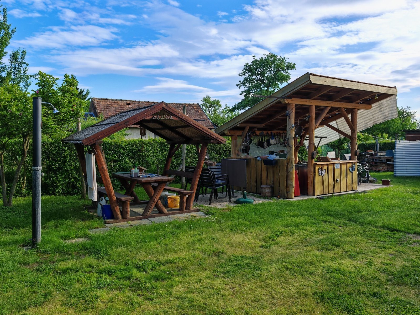 Großes offenes Grillhaus mit ausgestatteter Küche - auch im Winter nutzbar!