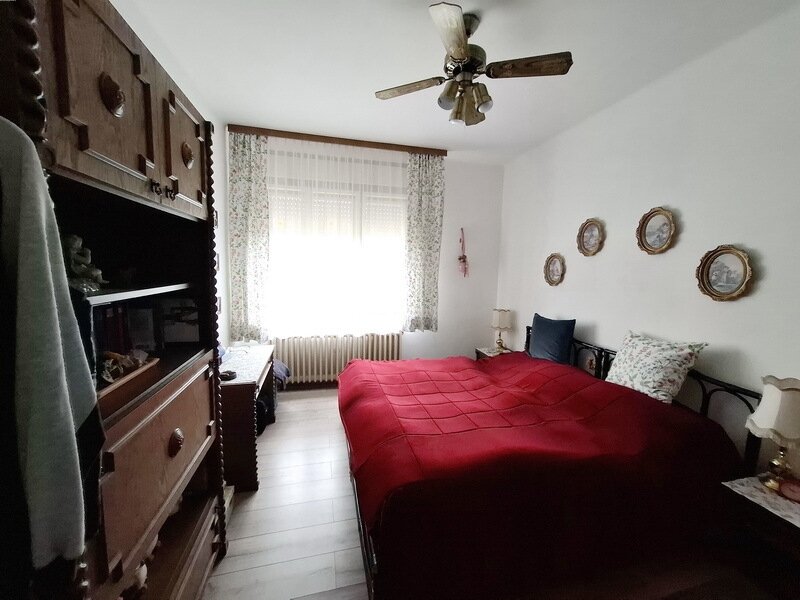 Räume im Erdgeschoss: Wohnzimmer, Küche-Esszimmer, Speisekammer, 3 Schlafzimmer, Bad-WC.