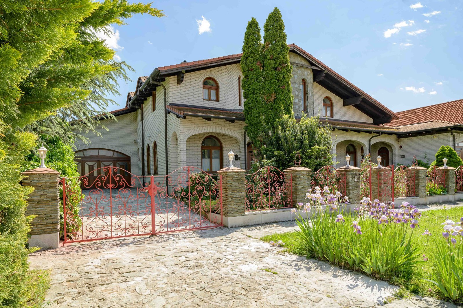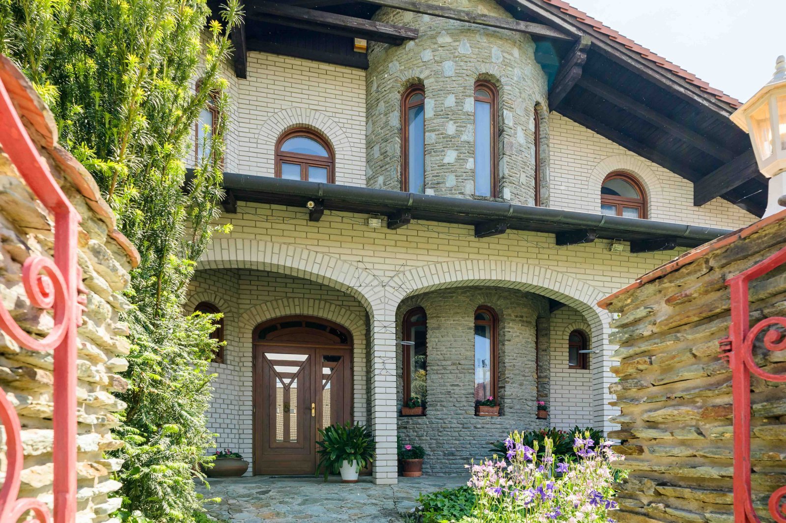 - Die Außenbeläge und der Zaunsockel bestehen aus Sátár-Grünstein