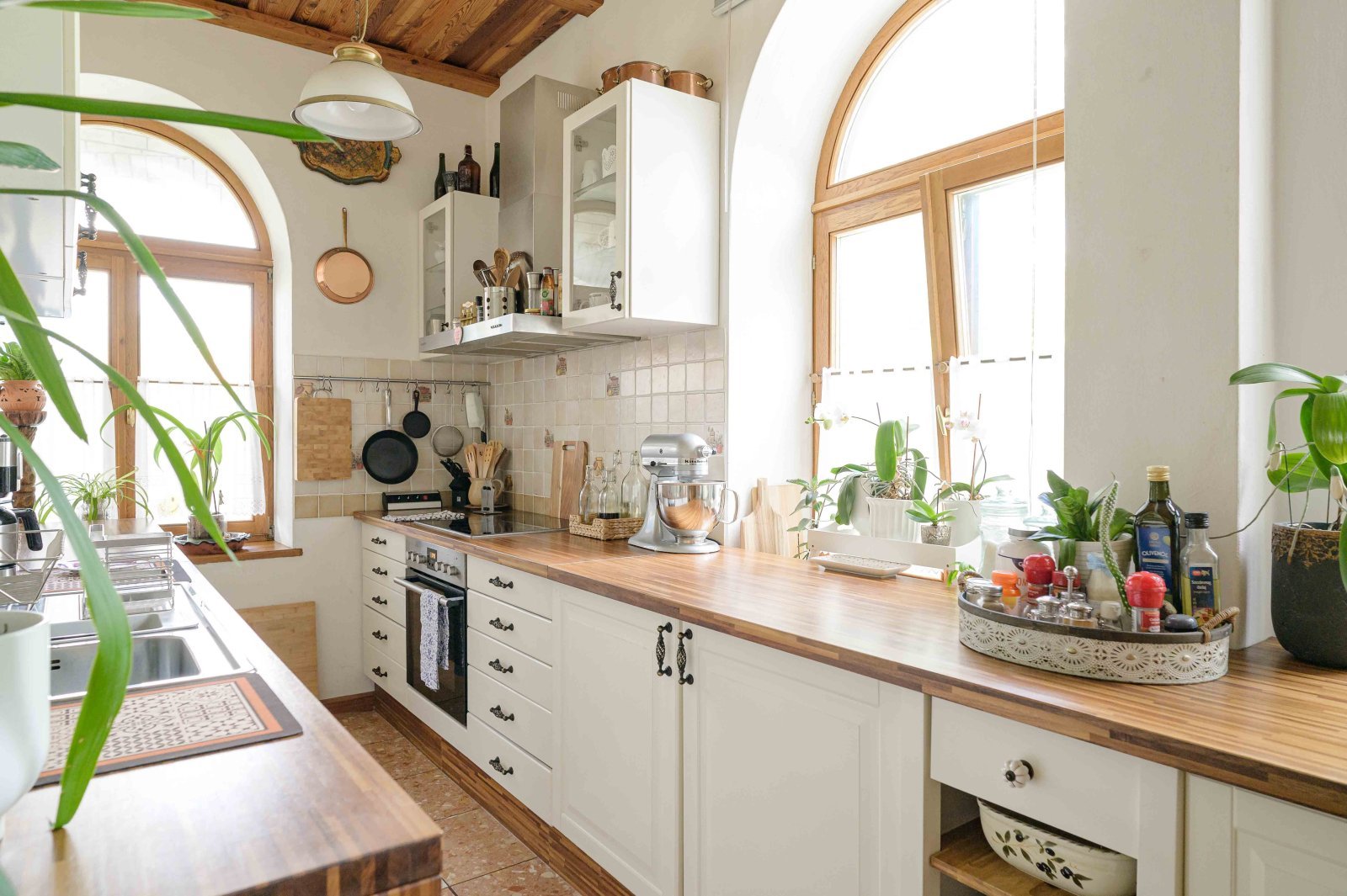 - Zahlreiche Bogenfenster aus Eiche