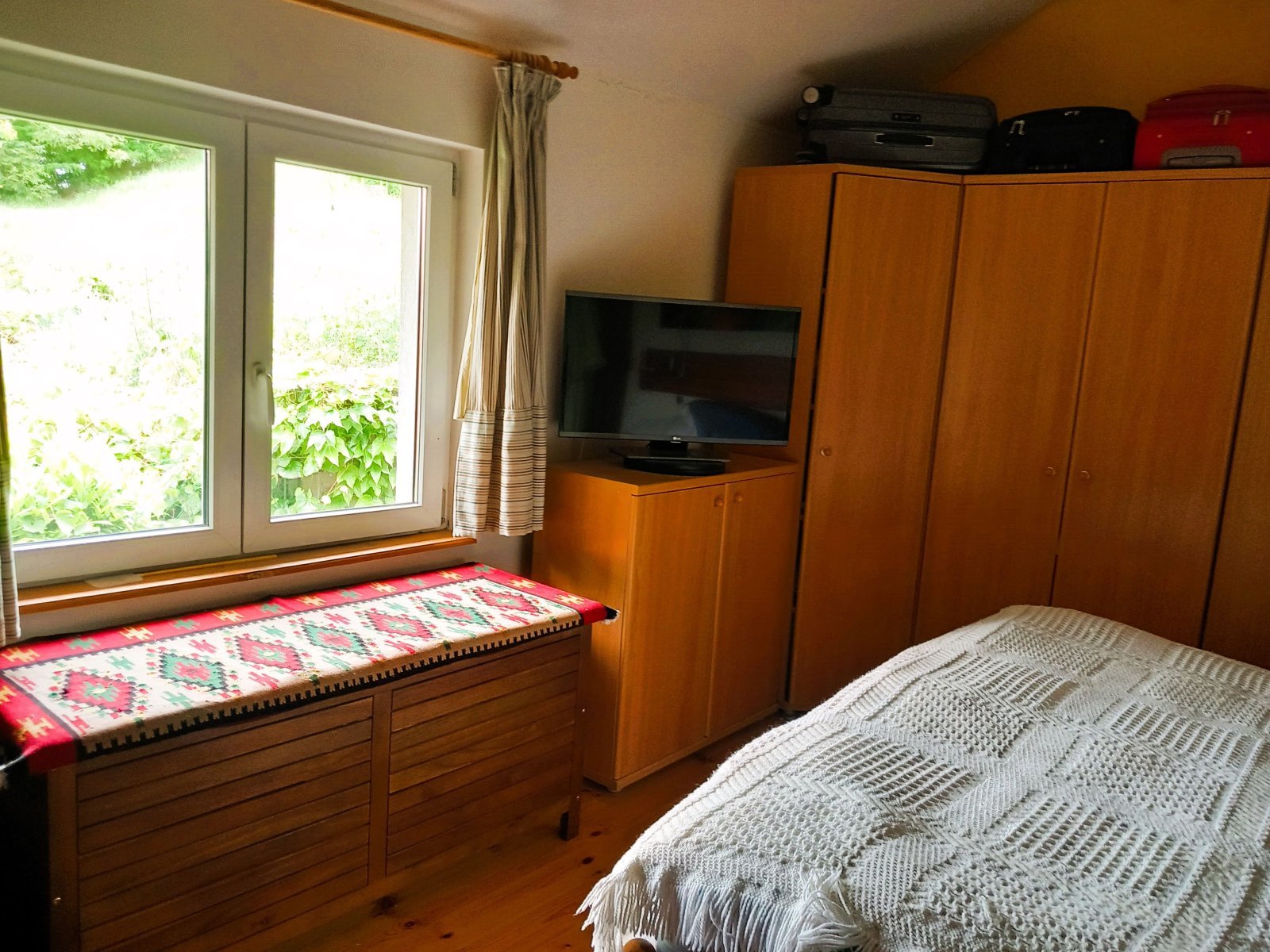 Die Räume im Untergeschoss: ein großzügiges Doppelzimmer mit Terrassenzugang, ein Badezimmer mit Dusche, ein Atelier und Abstellräume, die in Zukunft möglicherweise auch andere Funktionen erhalten. Über eine stabile, bequeme Holztreppe erreichen wir das Obergeschoss, wo sich ein großzügiges Wohnzimmer mit Doppelglastür, ein gemütlicher Flur, ein großzügiges Schlafzimmer, ein Badezimmer mit Badewanne und eine Wohnküche befinden.