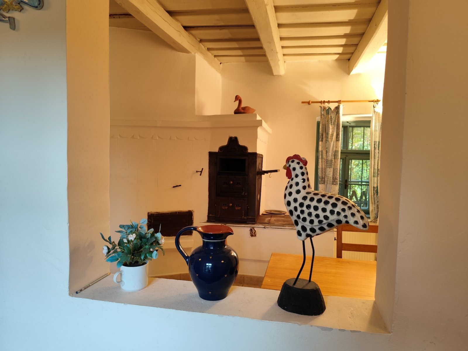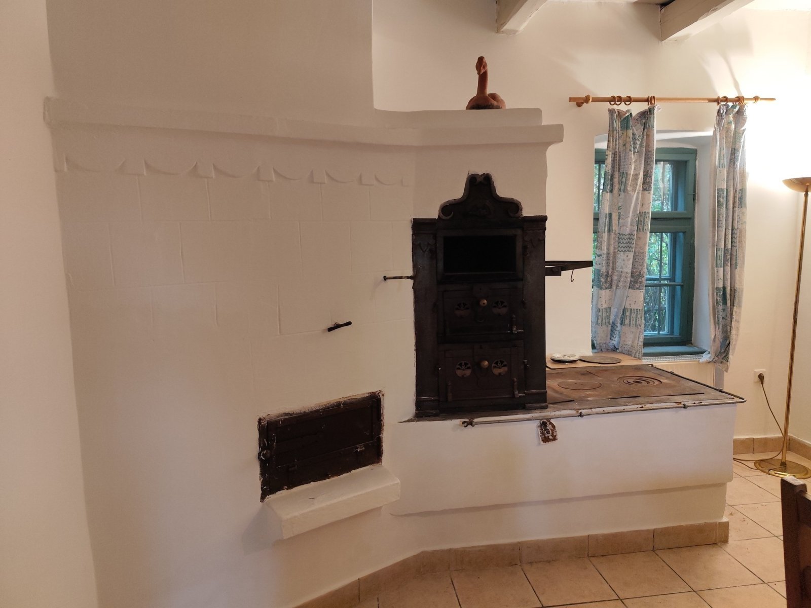 In der Küche wurde ein gemütlicher, traditioneller Ofen erhalten, der den Raum wie ein echtes Schmuckstück schmückt. Dieser schöne Ofen hat nicht nur eine praktische Funktion, sondern verkörpert auch die Geschichte und Kultur des Hauses.