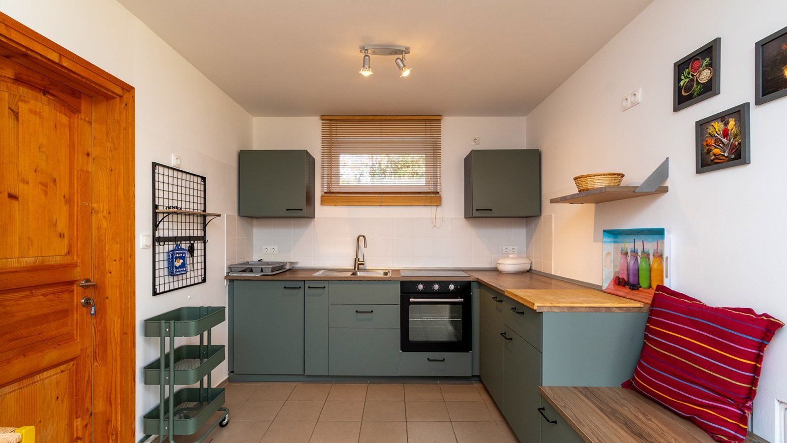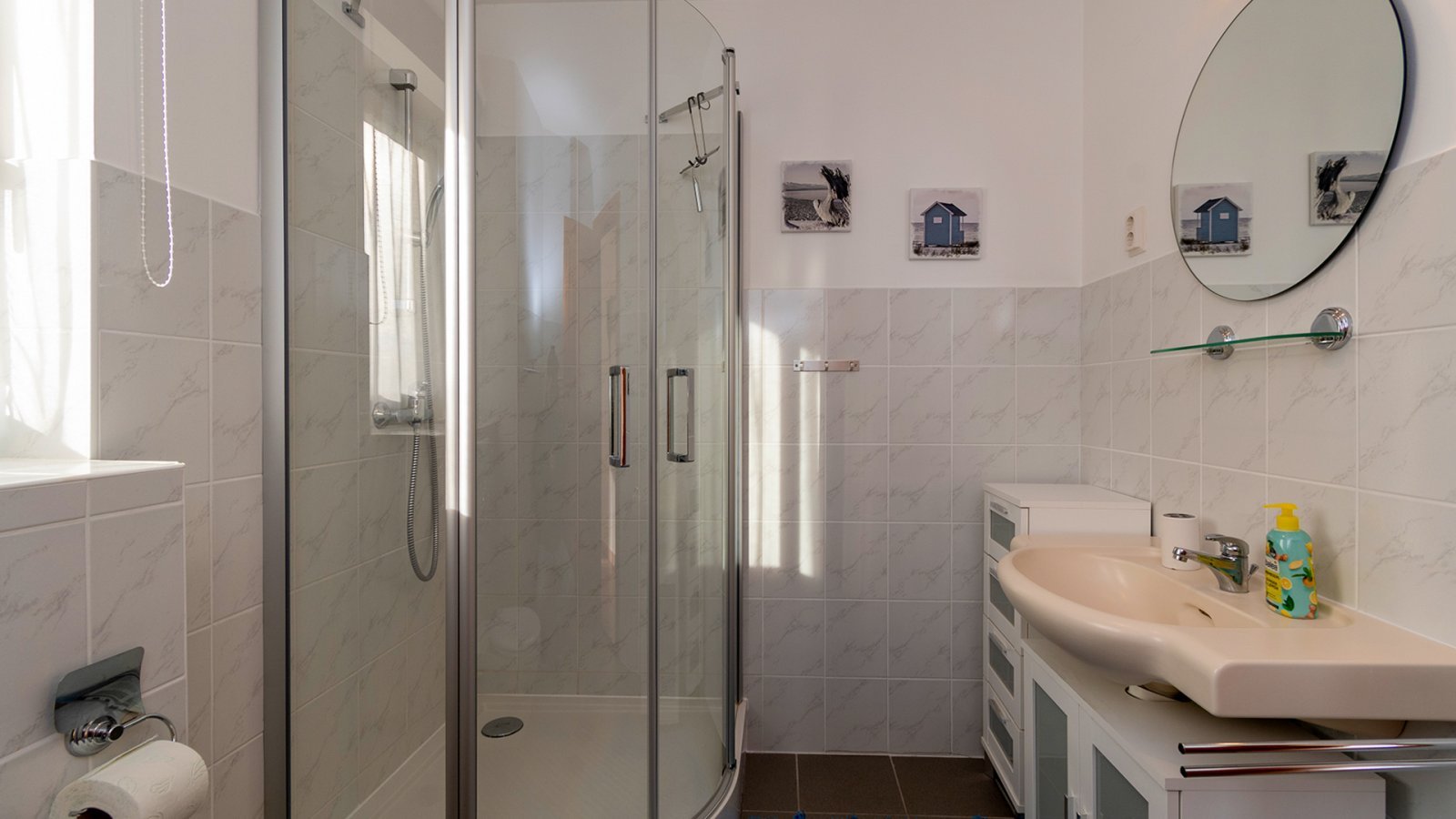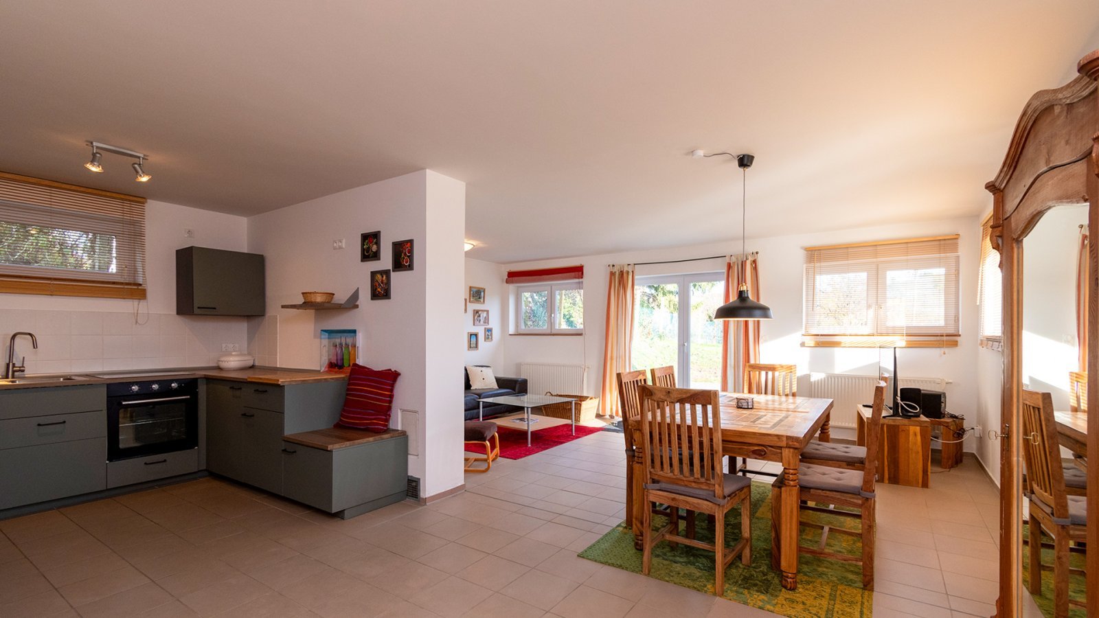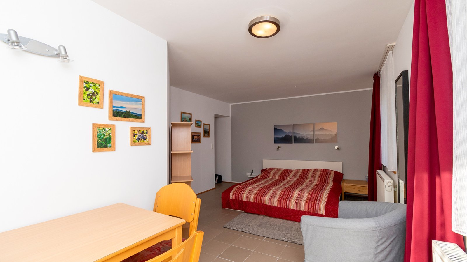 - Dachgeschoss: helles Wohn-Schlafzimmer mit Kochnische und Badezimmer mit Dusche.