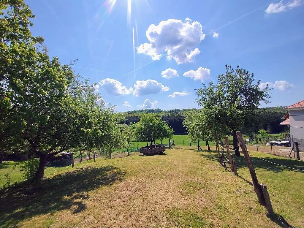 Das Anwesen besteht aus drei separaten, im Grundbuch eingetragenen Parzellen. Hinter dem Wohnhaus erstreckt sich eine sanft abfallende Wiese mit herrlichem Blick auf den nahegelegenen Kiefernwald, vor dem der Lugos-Bach plätschert.