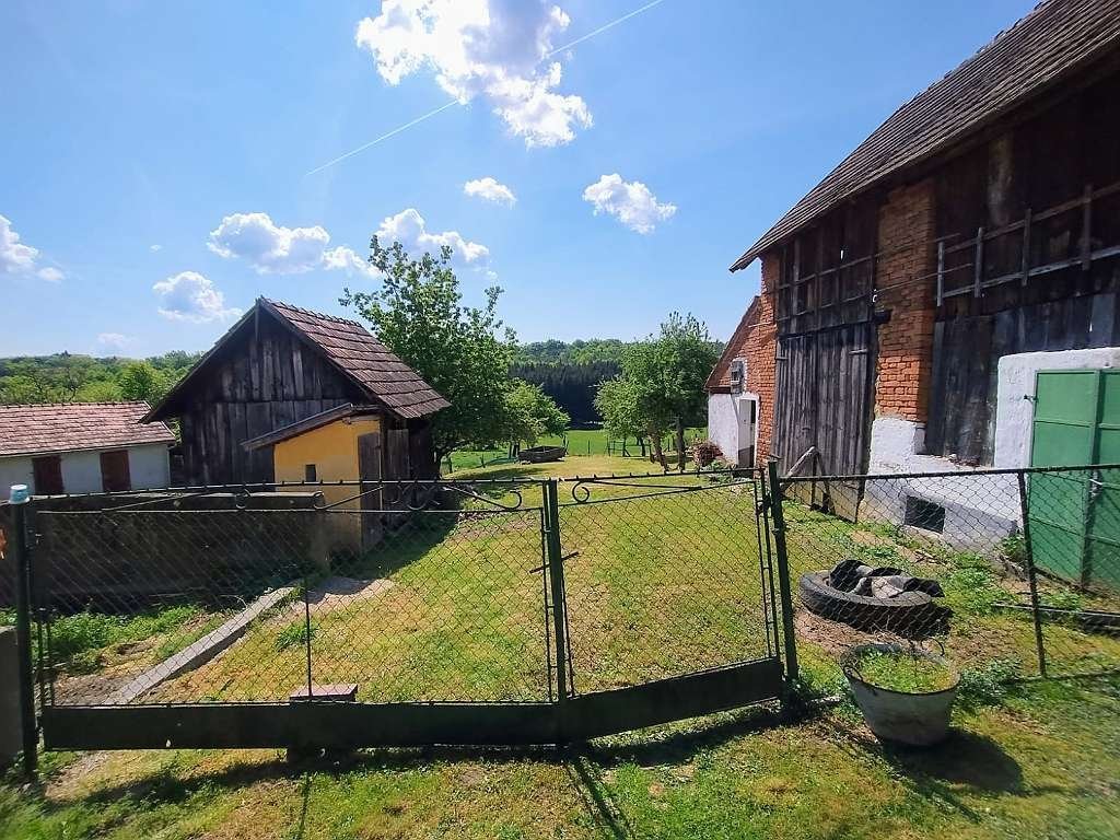 Im Hof befindet sich eine Garage, die für ein Auto geeignet ist, sowie eine Sommerküche in einem separaten Gebäude. Zusätzlich gibt es ein kleineres Holzgebäude (derzeit als Hühnerstall genutzt). Auf dem Grundstück steht zudem ein Brunnen mit reichlicher Wasserführung zur Verfügung.