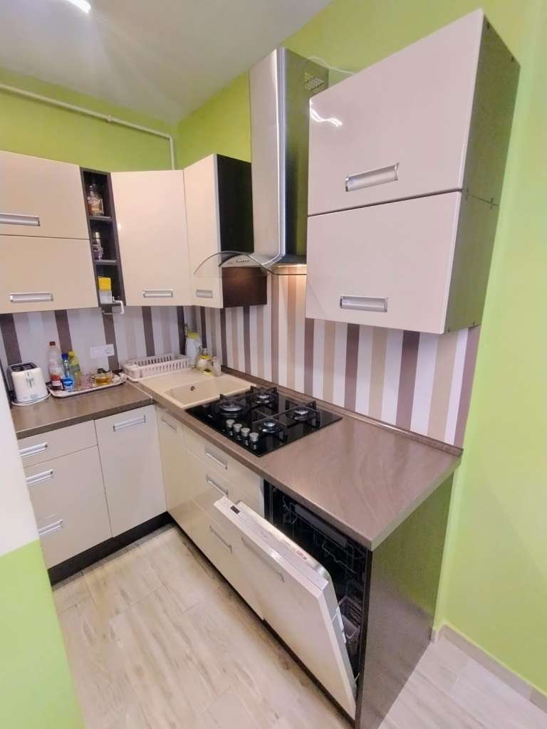 Küchenmöbel: Neuwertig, mit eingebauten Geräten (Geschirrspüler, Gasherd, Elektroofen, Dunstabzugshaube, Mikrowelle) im Preis inbegriffen.