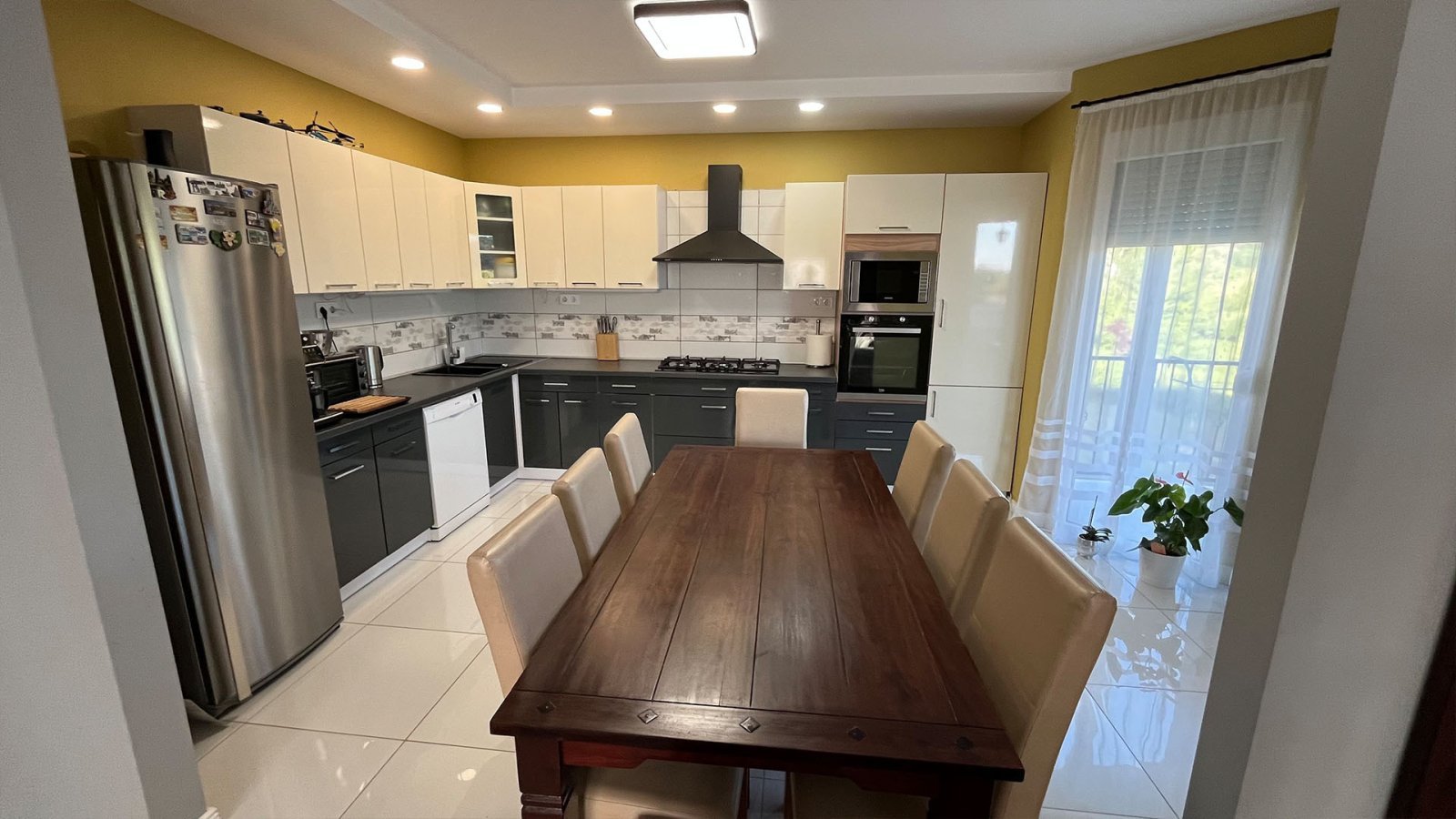 In ruhiger, naturnaher Lage in Csatár steht ein 2002 erbautes und vor wenigen Jahren komplett renoviertes Einfamilienhaus zum Verkauf, das sich ideal für zwei Generationen eignet. Das Haus mit einer Bruttogrundfläche von 170 m² (Nettogrundfläche 150 m²) befindet sich auf einem 870 m² großen, gepflegten Grundstück, auf dem zwei Holzhäuser zusätzlichen Stauraum bieten.