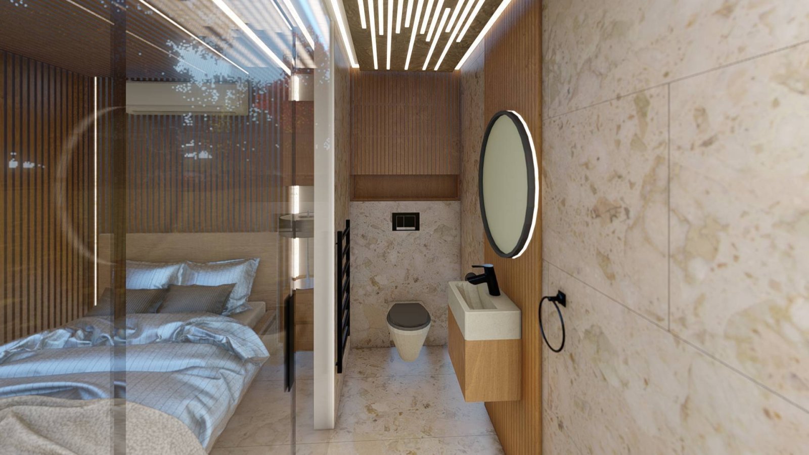 - Die Immobilie verfügt über Fußbodenheizung und eine 3,5-kW-GREE-Inverter-Klimaanlage (Heizen/Kühlen).