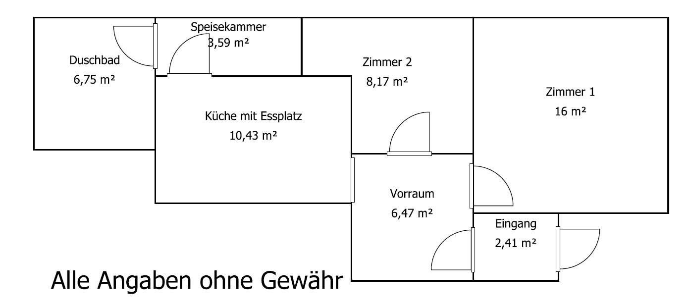 Das Haus kommt mit ca. 55 m² Wohnfläche die sich auf den Eingang, einem Vorraum, einem Wohnzimmer, einem Schlafzimmer, der Küche mit Essplatz sowie einer Speisekammer und dem Duschbad aufteilt.