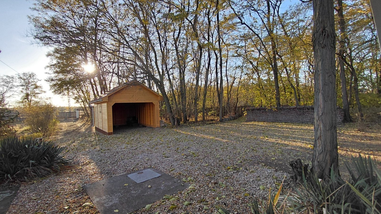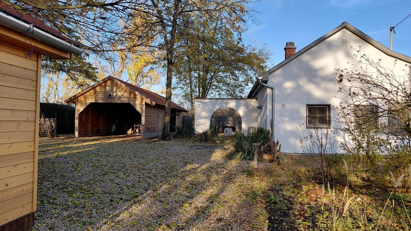An Platzmangel mangelt es hier nicht. Es gibt zwei große Carports, einen Holzschuppen und einen abschließbaren Schuppen.