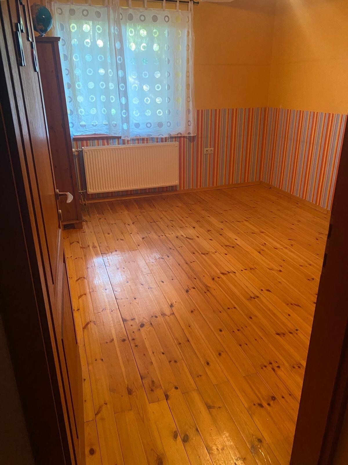Es verfügt über drei Zimmer mit separatem Eingang, ein geräumiges Wohnzimmer, eine helle Küche, Heizraum sowie einen großen Keller mit drei Räumen, von denen einer als Garage genutzt werden kann. Der Keller ist sowohl vom Haus als auch vom Garten aus zugänglich und mit Heizung, Wasseranschluss, Dusche und WC ausgestattet, was ihn auch für Wohnzwecke, Werkstatt oder gewerbliche Nutzung geeignet macht.
