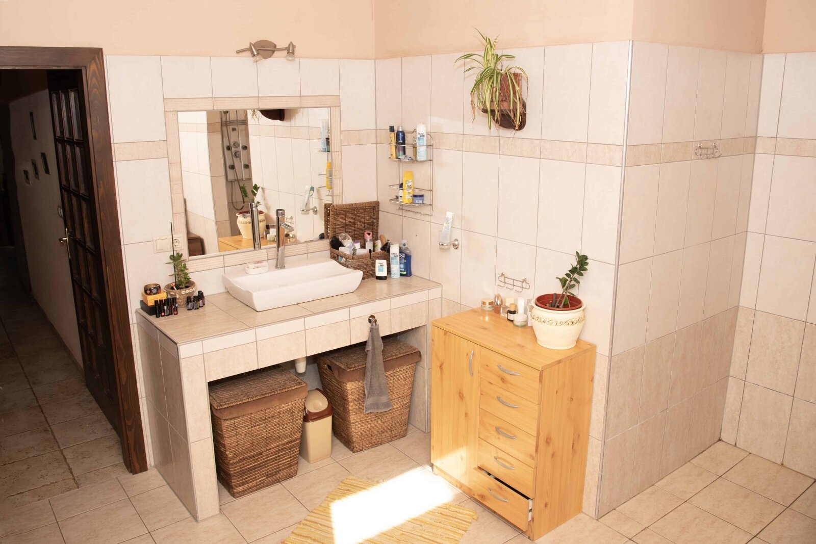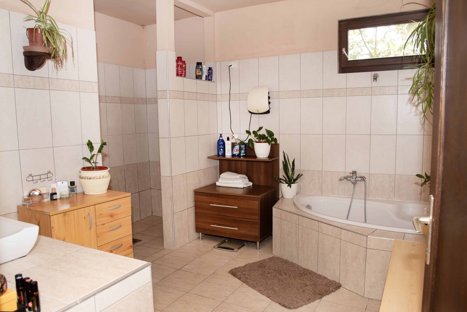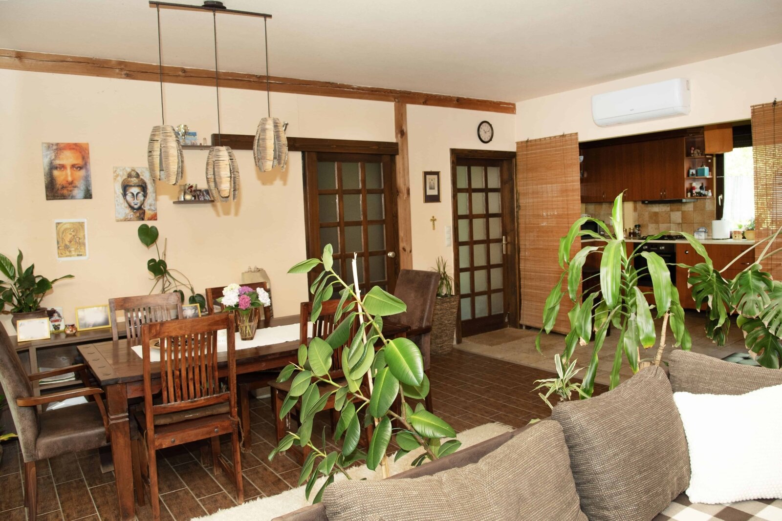 Auf dem Grundstück befindet sich ein 140 m2 großes Wohnhaus in hochwertiger Leichtbauweise, das dank ausgezeichneter Dämmung und durchdachter Raumaufteilung ein behagliches Wohngefühl vermittelt. Es verfügt über zwei Schlafzimmer, einen großzügigen Wohn-Essbereich mit Kachelofen, Speisekammer, Garderobenzimmer und ein Badezimmer. Die große Holzdeck-Terrasse eröffnet einen atemberaubenden Blick auf die süd-zalai Hügellandschaft.
