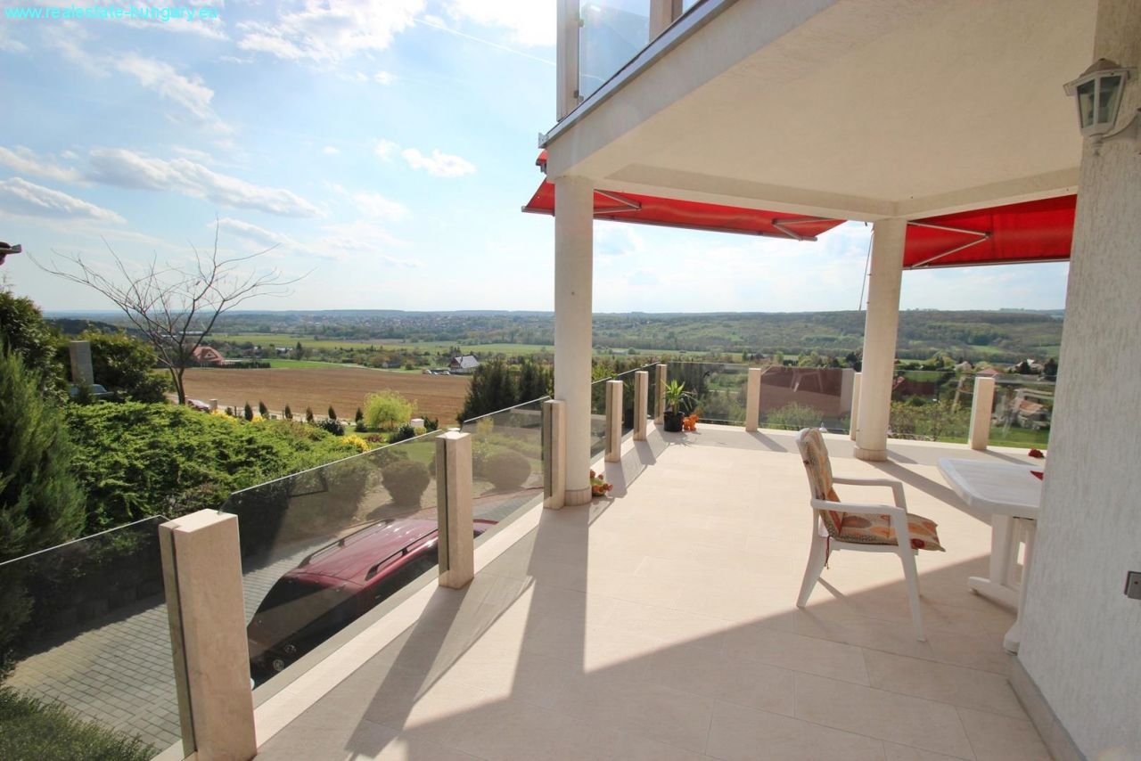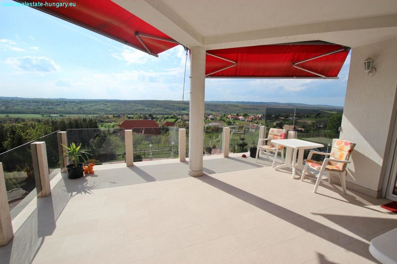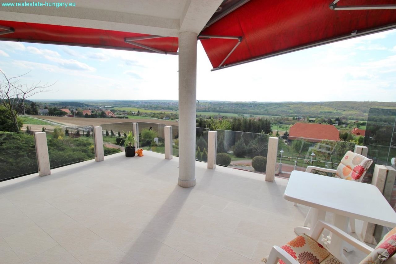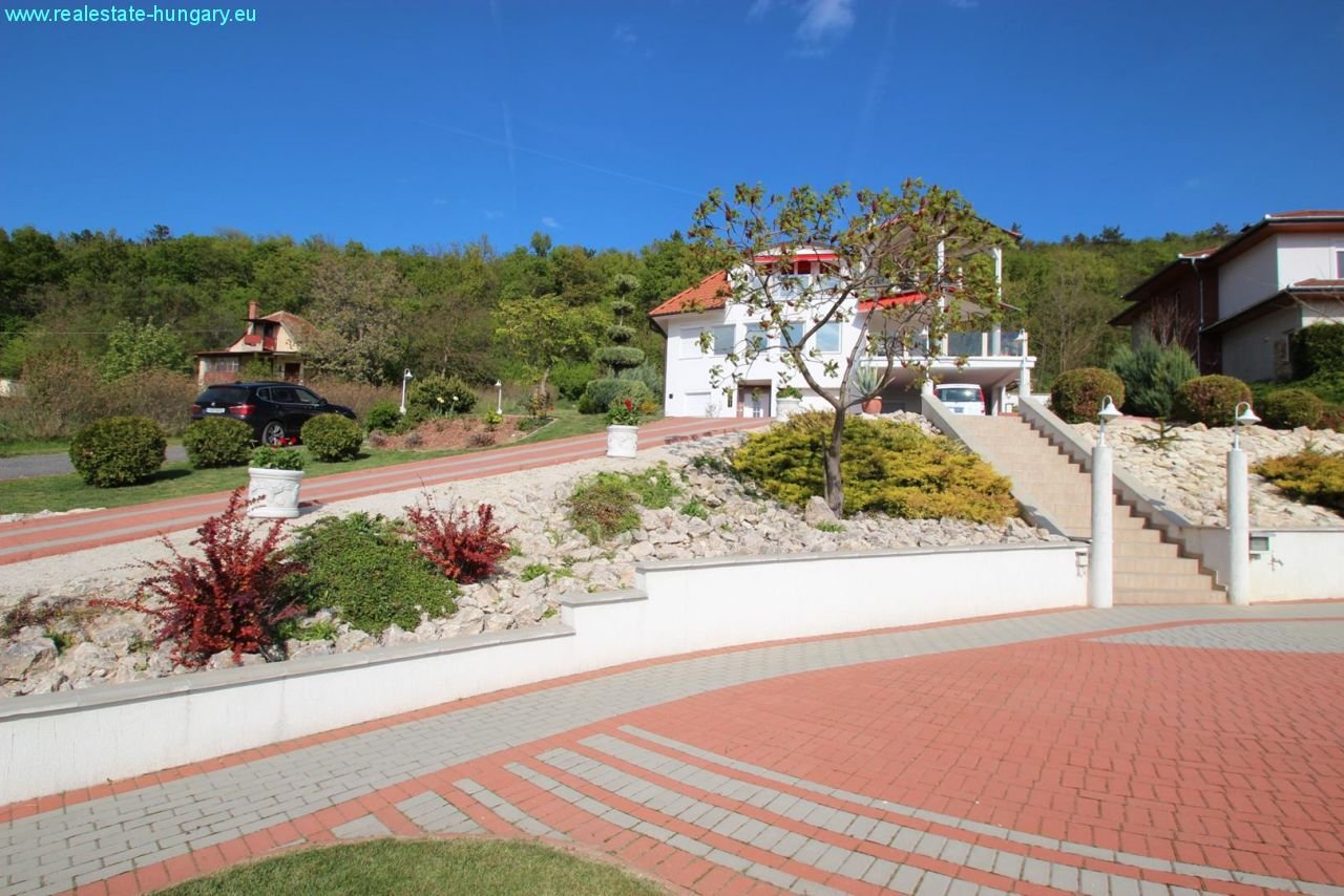 das sehr großzügig gebaute Massivhaus besticht schon durch die exponierte Lage, die moderne Einrichtung, die Nähe zu Balaton und Thermal und zahlreiche, weitere Ausstattungsdetails: Gaszentralheizanlage mit Fußbodenheizung und Radiatoren, automatisches Garagentor, Alarmanlage, ausgedehnte, windschutzverglaste und teilüberdachte Terrasse und Balkon mit zusammen 70 m², Einbauküchen mit Geräten, weitläufig gepflasterte Einfahrts- und Parkflächen, schöner Grillplatz mit gemauerten Grill- und Sitzbereichen, Regenwasserzisterne mit 15 m³ Fassungsvermögen, großformatige, getönte Isolierglasfenster, sehr gepflegte Gartenanlage mit Ziergewächsen. Das Obergeschoß kann als separate Wohnung genutzt werden. Top Anlageobjekt!!!