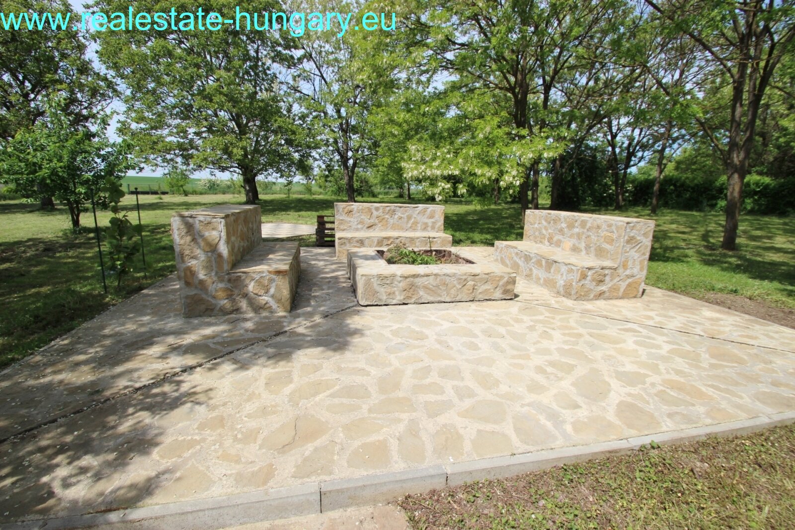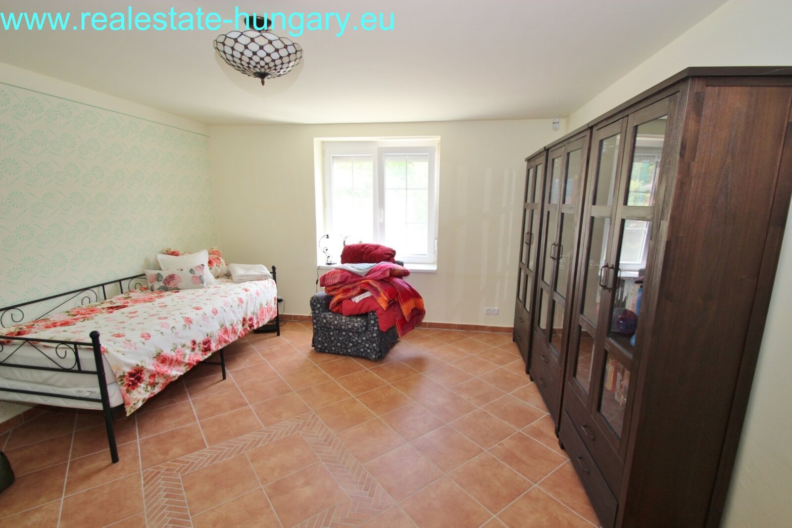 das schmucke Anwesen wurde von den Eigentümern liebevoll im ungarischen Stil kernsaniert und kann jetzt als neuwertiges Landhaus betrachtet werden. Das Gebäude wird mit einer energiesparsamen Bodenheizung beheizt, verfügt über einen schönen Kachelofen und Schwedenofen als optionale Heizmöglichkeit und ist mit Alarmanlage mit Videoüberwachung ausgestattet. Das sehr moderne Bad und die neue Einbauküche mit Geräten runden das Bild ab. Auf dem sehr gepflegten, ebenen Rasengrundstück zahlreiche Obstbäume, alter Baumbestand, großer Grillplatz mit gemauerten Sitzelementen, ausgedehnte, windgeschützte Terrasse, 2 Brunnen und 2 Garagen mit automatischen Toren. Das Objekt besteht aus 2 sehr großen Parzellen und läßt daher weitere Bebauung mit Wohnhaus und Nebengebäuden zu. Ideal auch zur Pferdehaltung geeignet. Im Kaufpreis sind die komplette Möblierung und 3 Rasentraktoren zur Grundstückspflege beinhaltet. Top Angebot mit viel Potential in sehr idyllischer Lage!
