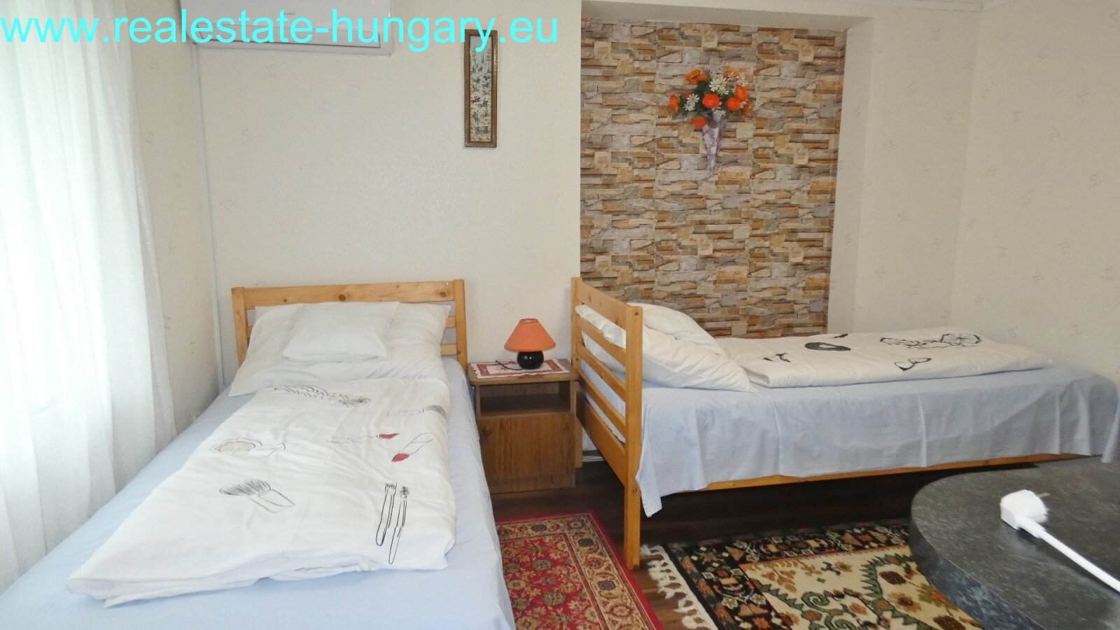 Aus Altersgründen steht dieses geräumige Haus, das sich für eine Familie mit großem Platzbedarf ebenso eignet wie als Pension, zum Verkauf. In massiver Bauweise 1989 erstellt, wurde es fortlaufend instand gehalten und weist keinen Sanierungsstau auf. Neben dem großen Aufenthaltsraum im EG befinden sich hier die privaten Räume, während sich die Schlafzimmer im OG zur Vermietung anbieten. Dank Thermalbad und Golfplatz besteht Nachfrage von Stammgästen. Ebenfalls vermietet werden können die 2 Apartments im Anbau mit sep. Zugängen. Ausstattungsmerkmale: Neben der Gaszentralheizung, moderne Klimageräte in allen Räumen sowie 2 Schwedenöfen. Fußböden: Fliesen und Parkett, ferner isolierverglaste Holzfenster mit Moskitoschutz. Die herrliche Außenterrasse lädt zum Entspannen ein. Das Grundstück ist eingezäunt, verfügt neben einer Garage über einen Gästeparkplatz und durch alten Baumbestand einen schattigen Garten. Weitere Details gerne telefonisch. Hier bietet sich neben einem großen Wohnhaus eine Existenzmöglichkeit in einem attraktiven Preis-/Leistungsverhältnis!