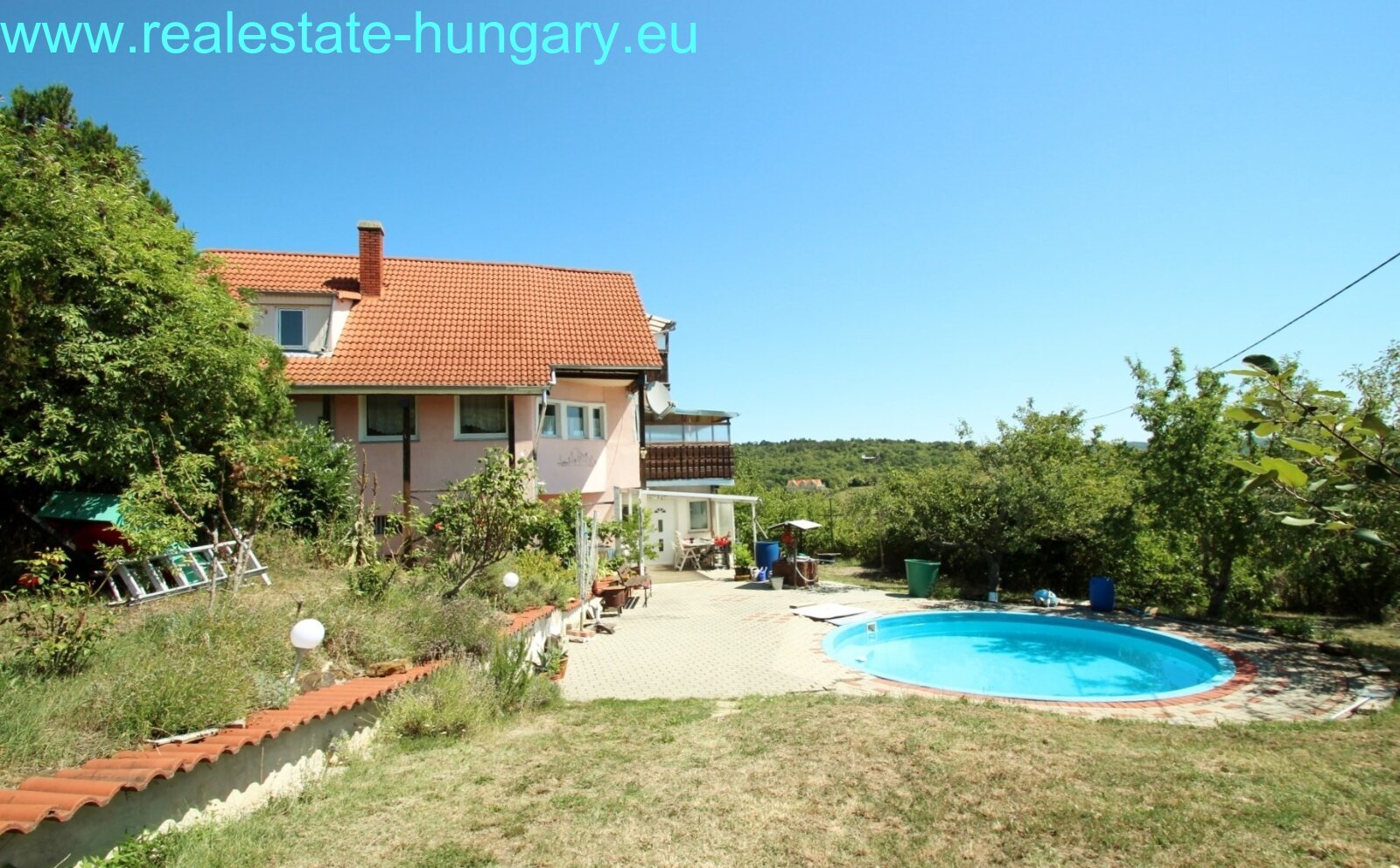 das geräumige Wohnhaus befindet sich auf einem sehr gepflegten, eingezäunten Rasengrundstück mit einigen Obstbäumen, Brunnen, Grillplatz und einem Pool. Das Gebäude wird mit Gaszentralheizung beheizt und besteht aus 2 getrennt begehbaren Wohnungen! Die Höhenpanoramalage in einer Sackstrasse bietet absolute Ruhe und einen wunderschönen Ausblick auf die umliegende Landschaft und den Plattensee. Das Objekt steht mit Möblierung, 2 Rasentraktoren und weiteren Gerätschaften zum Verkauf. Es ist die Nutzung als Feriendomizil oder auch als Dauerwohnsitz möglich. Top Angebot in schöner Lage.