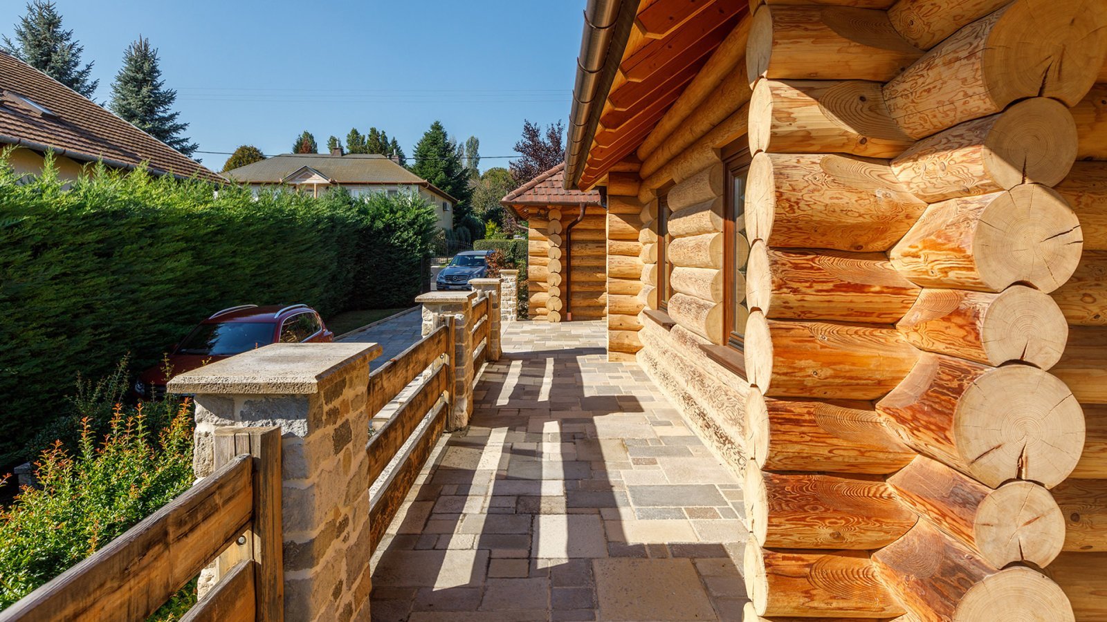 Dieses einzigartige Blockhaus wurde aus handgeschnitzten transsilvanischen Blockbohlen errichtet und bietet zeitlose Qualität sowie eine warme, behagliche Atmosphäre.