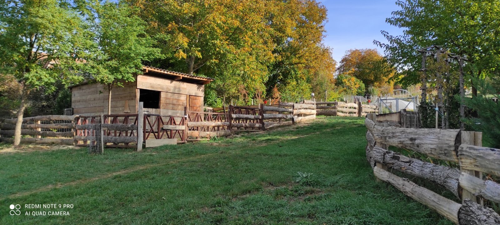 Ein Stall und ein Auslauf zur Tierhaltung sowie ein 48 m² großes Lagergebäude stehen ebenfalls zur Verfügung.